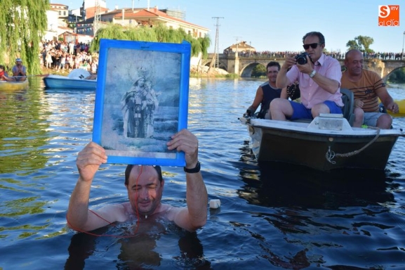 La celebración de la festividad de la Virgen del Carmen reunió a decenas de personas junto a las veras del río Tormes a su paso por Alba de Tormes. La imagen de la Virgen del Carmen inició la procesión en el agua, custodiada por la familia Cosme, dirigiéndose hacia el margen derecho del río, dónde como es costumbre, una persona se sumergió en las aguas para recoger la imagen de la virgen en forma de cuadro que custodia el río Tormes.
