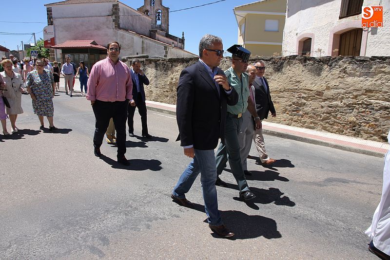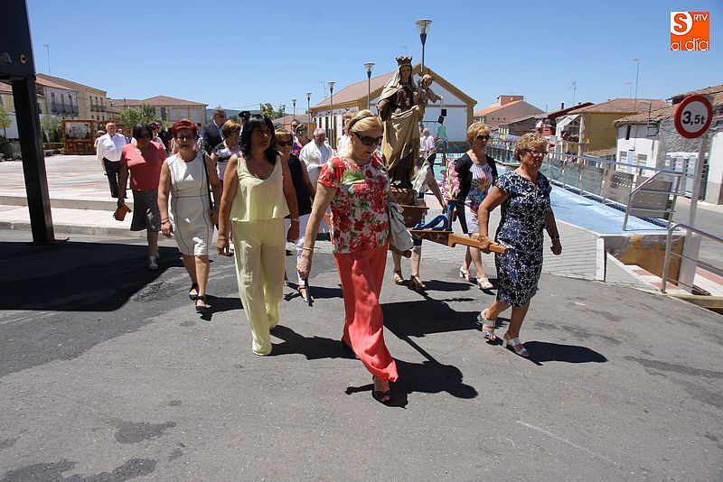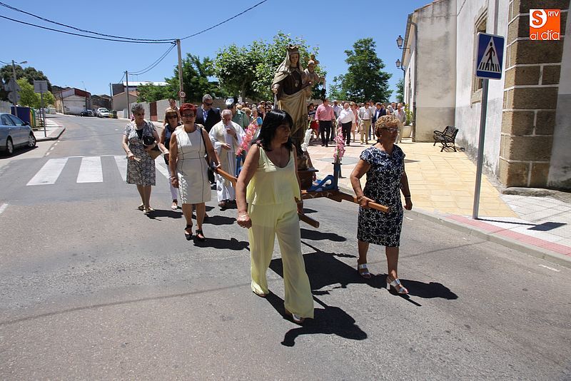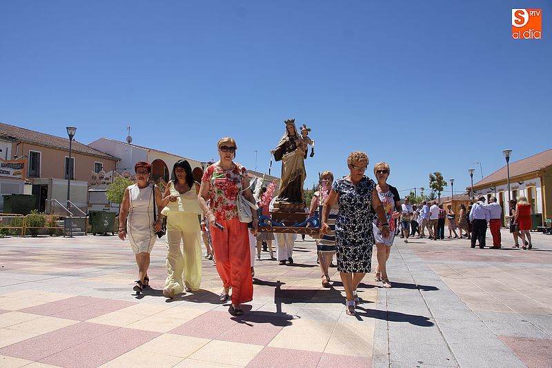 Los habitantes de Campillo de Salvatierra disfrutaron hoy del día grande de los festejos con la celebración de los actos religiosos en honor a la Virgen del Carmen. A la una de la tarde comenzó la misa cantada en la parroquia local, seguida de la tradicional procesión hasta la plaza Mayor. El alcalde de Guijuelo, Francisco Julián Ramos Manzano; el primer teniente de alcalde, Ángel Picado; la concejala de Pedanías, Mª Jesús Moro Tejedor; el concejal de Medio Ambiente, Roberto Martín y la concejala de Educación, Mª Teresa Montero Prado, por parte del equipo de Gobierno, todo el grupo municipal socialista y el alcalde pedáneo de Palacios, Juan Ingelmo, entre otras autoridades, han acompañado esta mañana a la alcaldesa de Campillo, Rosa Hernández Ramos y la corporación municipal de la entidad local. A continuación, se invitó a los presentes al tradicional convite en el restaurante La Escuela, al que asistieron decenas de vecinos. Esta noche, le llegará el turno a la Orquesta Pikante y a Nyno Vargas que ofrecerá un espectáculo en el que se funde el flamenco, con el rap y los ritmos latinos.