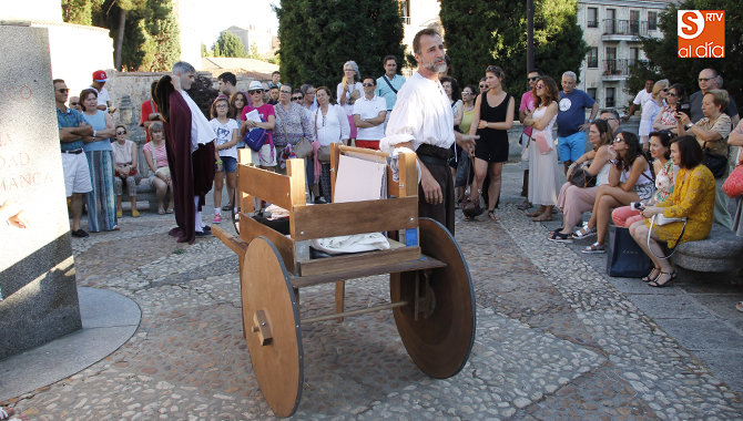 La Plaza del Concilio de Trento ha vuelto a ser punto de inicio de la singular ruta Dominicos, un viaje redondo, de 90 minutos por la ciudad y de la mano de Los Absurdos Teatro. Un particular homenaje a los padres dominicos, y a la conmemoración del centenario de la orden, incluida dentro de la programación de Salamanca Plazas y Patios.