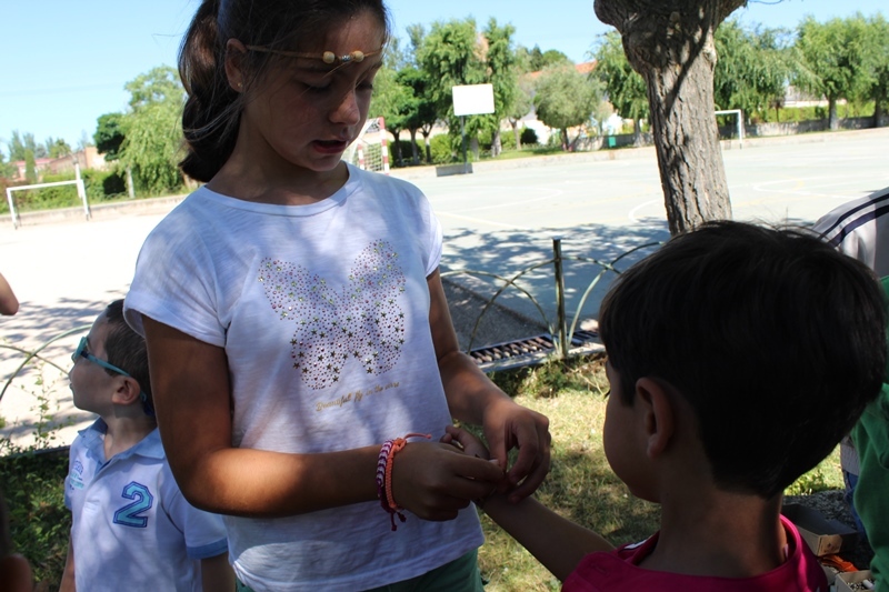 Al término del taller, monitores y alumnos del campamento regalaron a los niños del Centro Infantil Villa San Agustín pulseras de cuero.