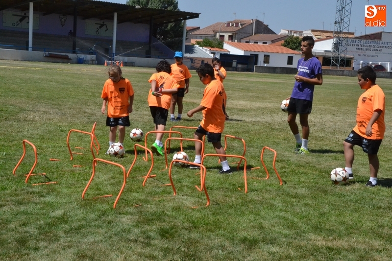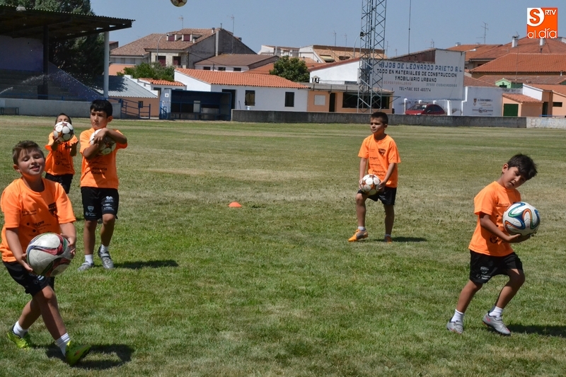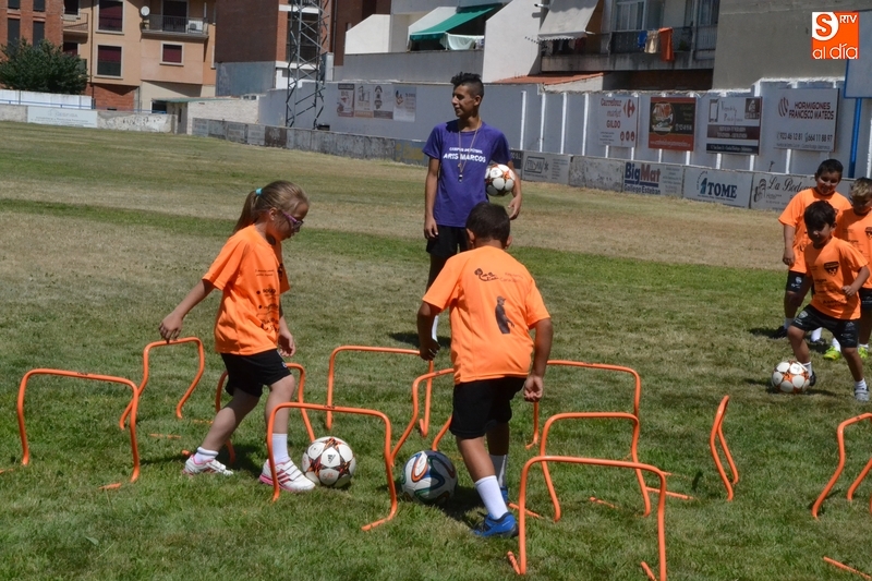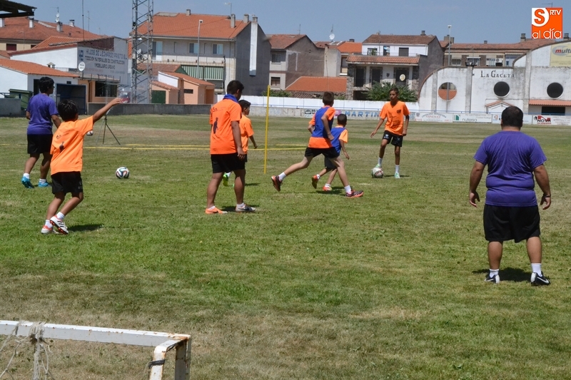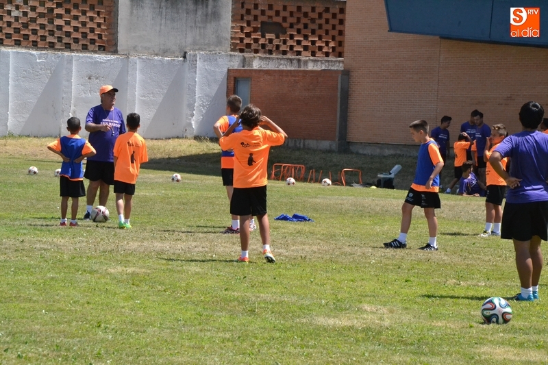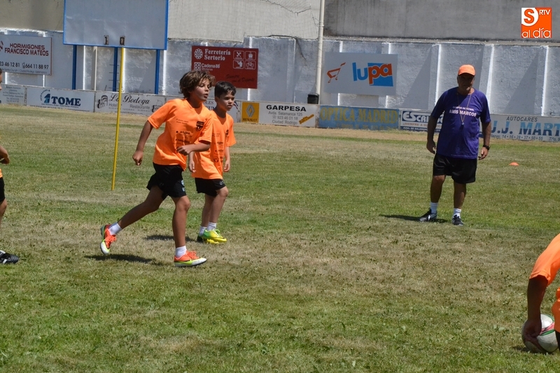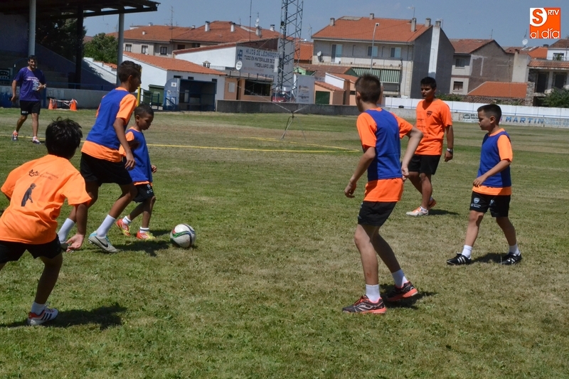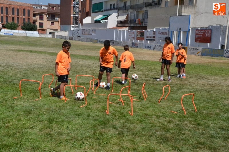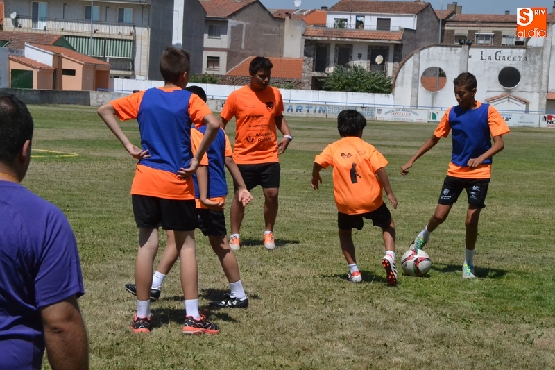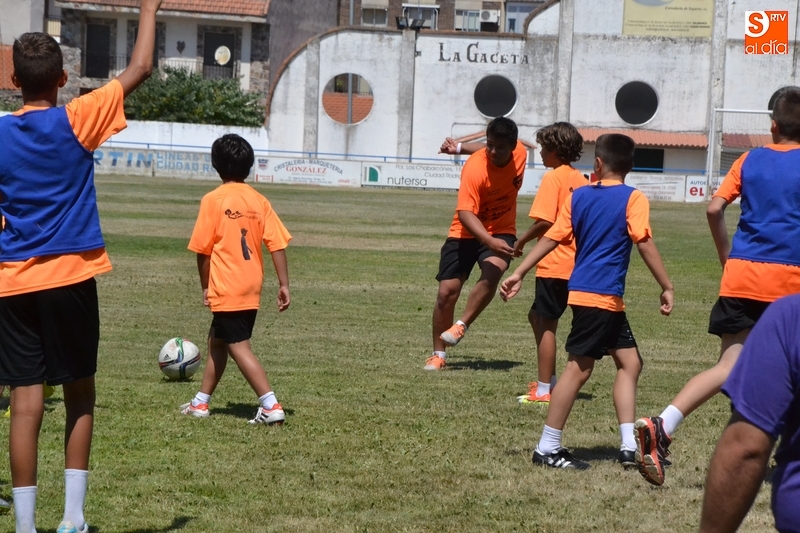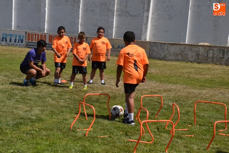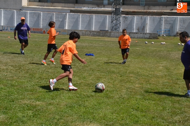 El Campo Francisco Mateos (cuyo césped está en delicadas condiciones) es escenario desde la mañana del lunes del primer turno del 4ª Campus de Fútbol promovido por el que era hasta hace unos días director deportivo del Ciudad Rodrigo CF, Aris Marcos.