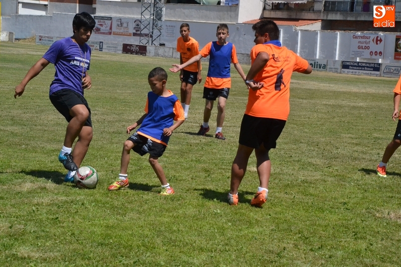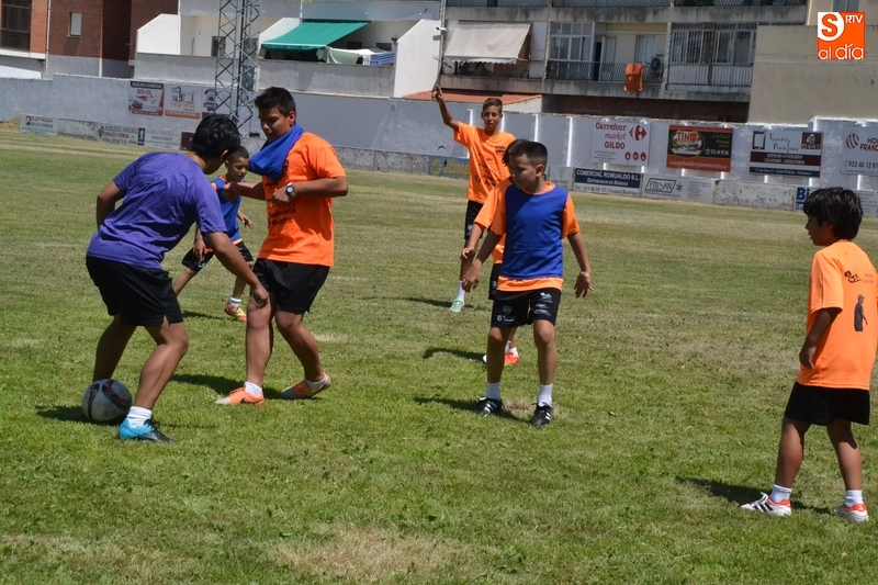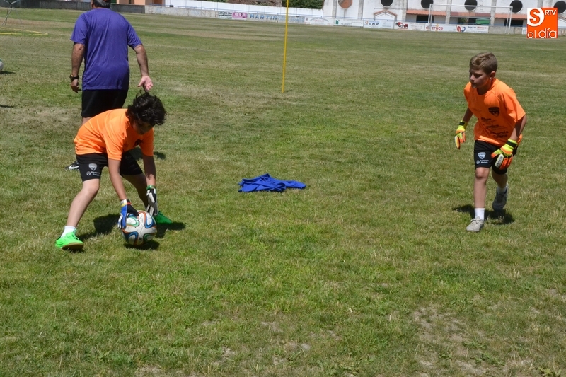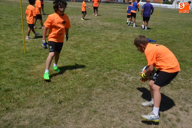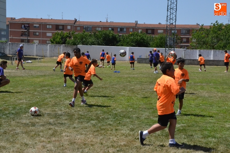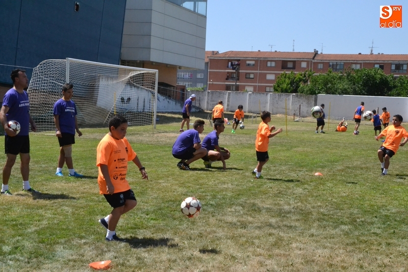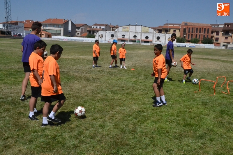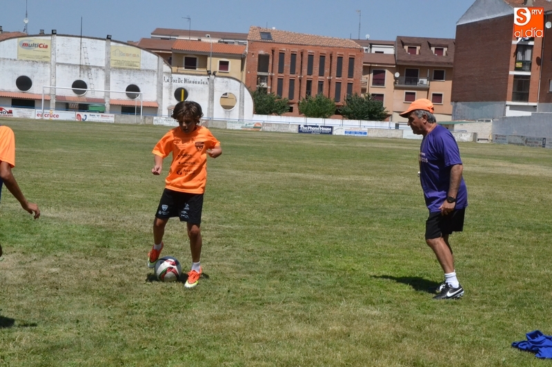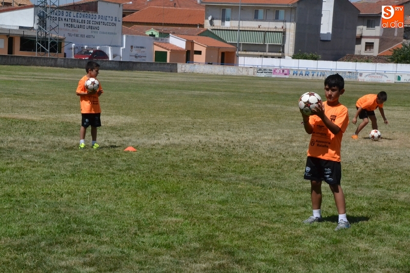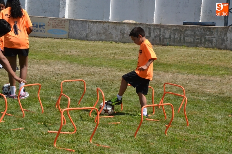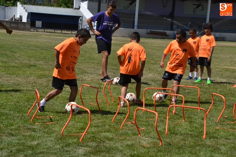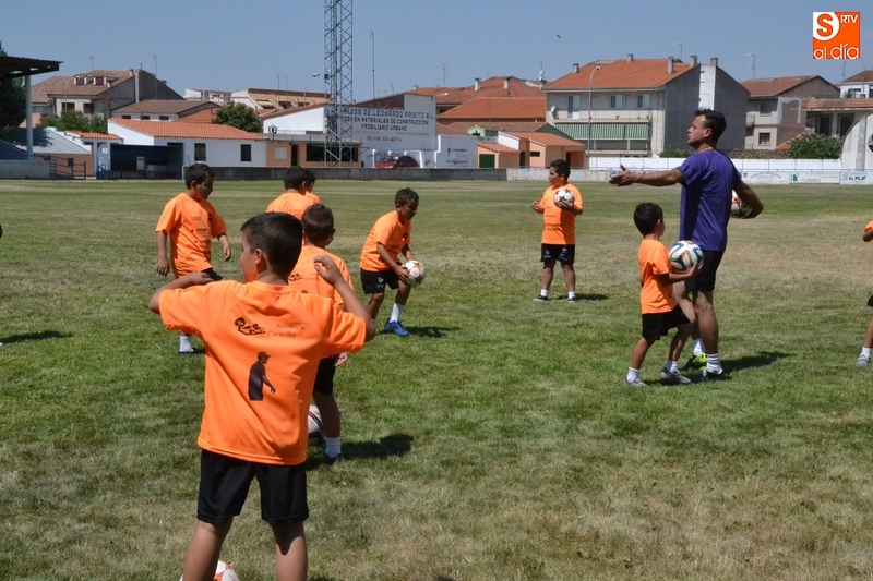 El Campo Francisco Mateos (cuyo césped está en delicadas condiciones) es escenario desde la mañana del lunes del primer turno del 4ª Campus de Fútbol promovido por el que era hasta hace unos días director deportivo del Ciudad Rodrigo CF, Aris Marcos.