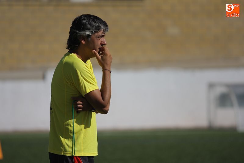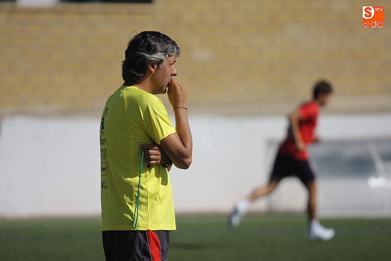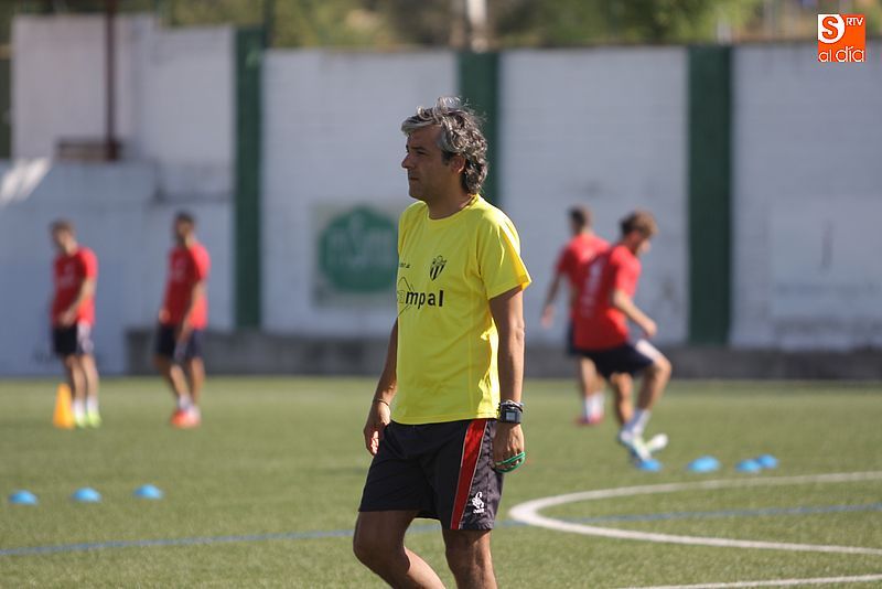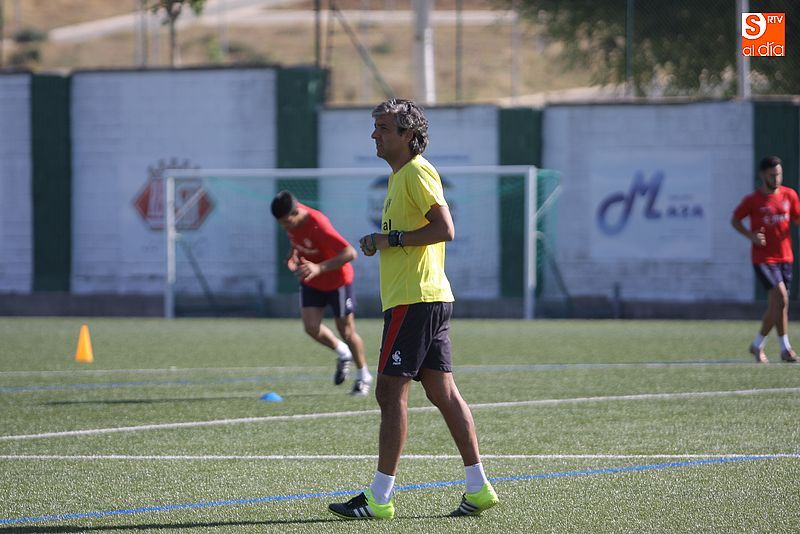 El técnico, Mateo García, se mostró muy ilusionado de comenzar el trabajo en el campo: "Ya llevábamos muchas semanas trabajando a través de vídeos, informes? y teníamos muchas ganas de pisar ya el césped, trasladando las muchas ideas que tenemos al equipo. Ha sido el típico primer día de pretemporada, los jugadores lo dan todo y con ganas de ponernos manos a la obra". García destacó que se ha encontrado con mucha calidad: "Me ha gustado mucho la calidad de los jugadores, soy más de calidad que de cantidad y se irá trabajando en tener en balón". La plantilla se irá poniendo a tono con los entrenamientos y los partidos ya concertados: "Hay jugadores que llegan bien, otros con algunos kilos de más tras las vacaciones, pero es lo habitual, hay buena disposición para estar en forma cuanto antes". El técnico indicó que aún faltan incorporaciones: "Atrás nos faltan centrales, algún jugador más en el centro de campo, falta por concretar posiciones? pero aún queda mucho mercado y muchos jugadores por ver. El club ya tiene un informe detallado con los perfiles que me interesan".