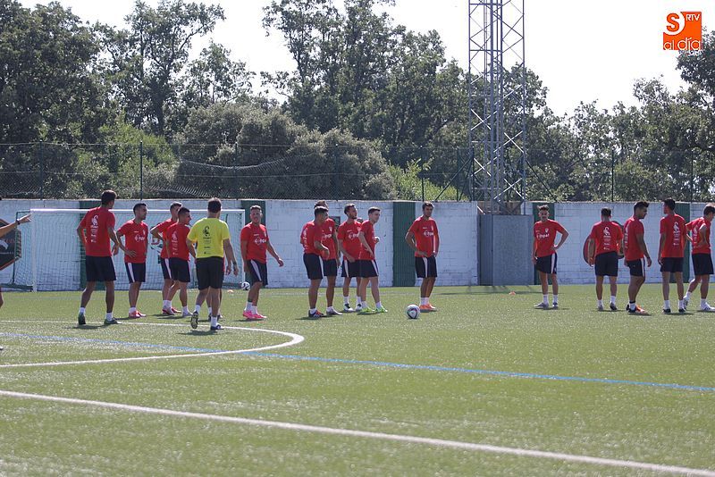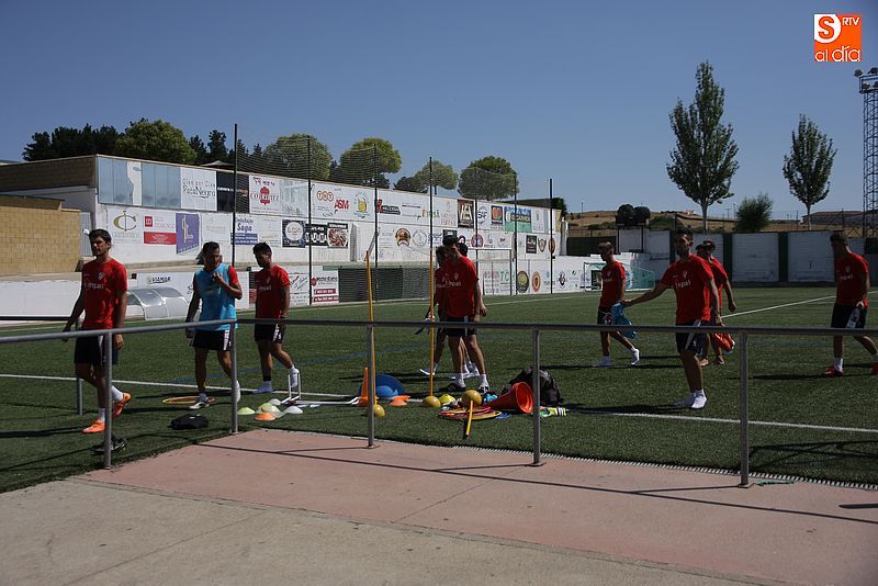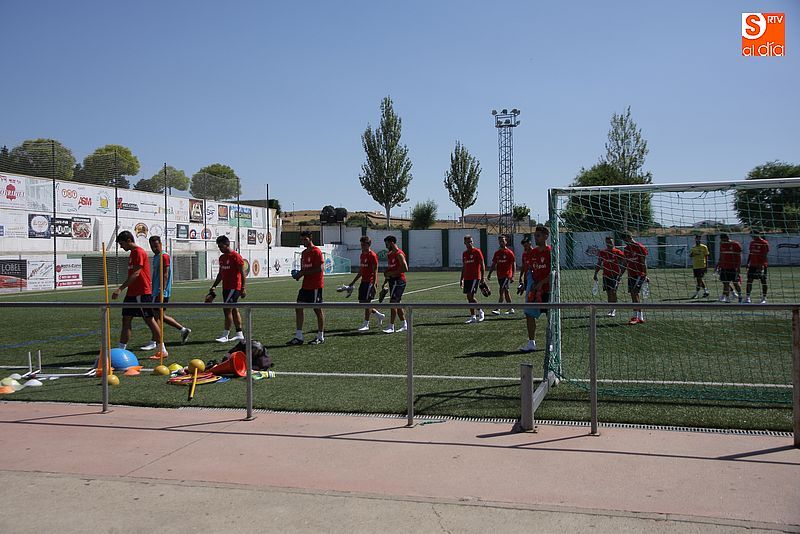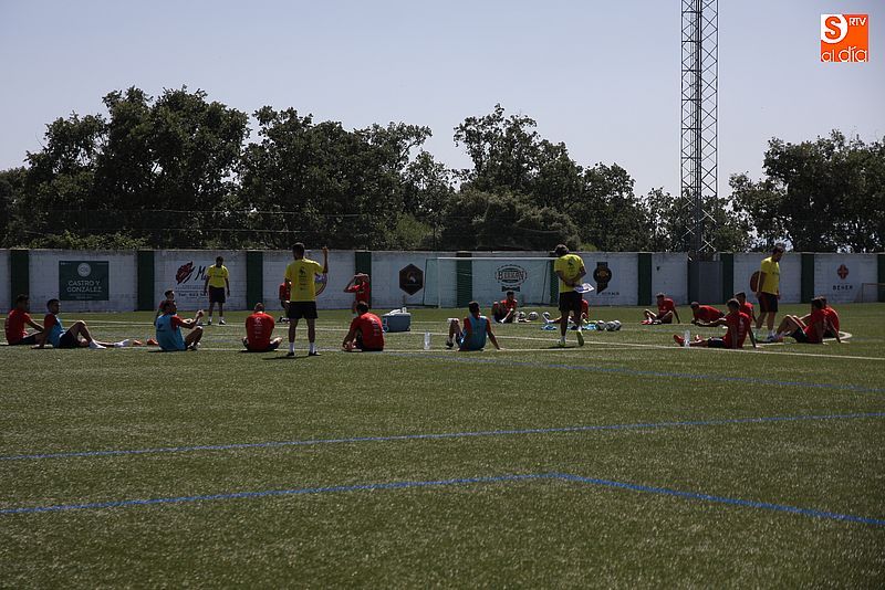 El Club Deportivo Guijuelo saltó hoy por primera vez al césped del Municipal. El día más caluroso del mes sirvió de bienvenida a un total de 16 jugadores, incluyendo las nuevas incorporaciones y los jugadores que han ido renovando en las pasadas semanas.