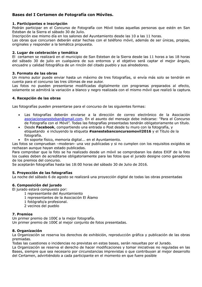 San Esteban de la Sierra continúa con su programación de actividades veraniegas presentando las bases de su I Certamen de Fotografía con Móviles. Se trata de un concurso fotográfico que se celebrará el próximo sábado, 30 de julio, organizado por la Asociación Cultural El Álamo junto con el Ayuntamiento.