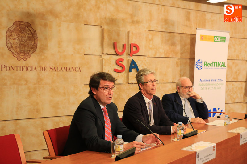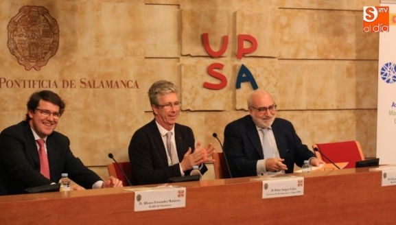 Las sesiones han comenzado en el Aula de Grados con la intervención del vicerrector de Investigación y Títulos de la UPSA, Pedro Sangro Colón; el alcalde de Salamanca, Alfonso Fernández Mañueco, y el director general de EOI, Fernando Bayón Mariné.