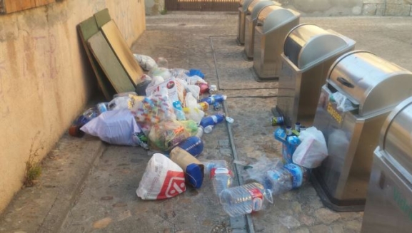 Hasta Ciudad Rodrigo Al Día llegaron en la tarde del miércoles estas imágenes tomadas en los contenedores situados en la calle Batería de Ciudad Rodrigo, en la parte trasera del antiguo Colegio Los Sitios (por lo tanto, en las inmediaciones del Parador de Turismo).