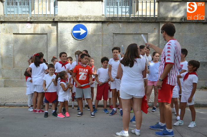 Con el tradicional cántico al santo, se daba el pistoletazo de salida a un encierro breve y sin ningún tipo de incidencia que terminó en la "plaza", donde los más peques pudieron hacer sus pinitos en el mundo de los recortes a los toros.