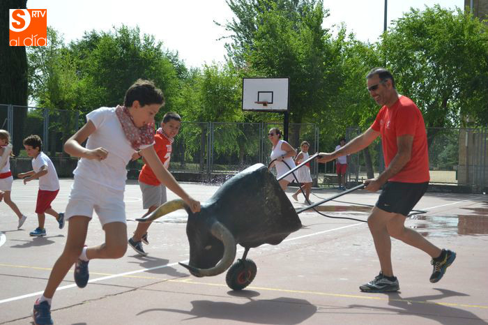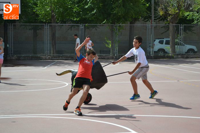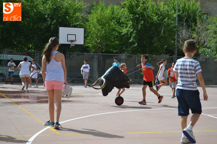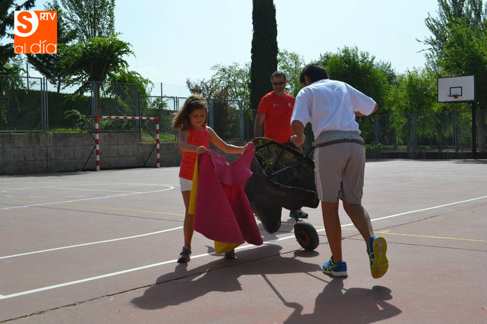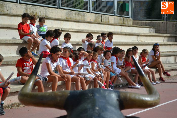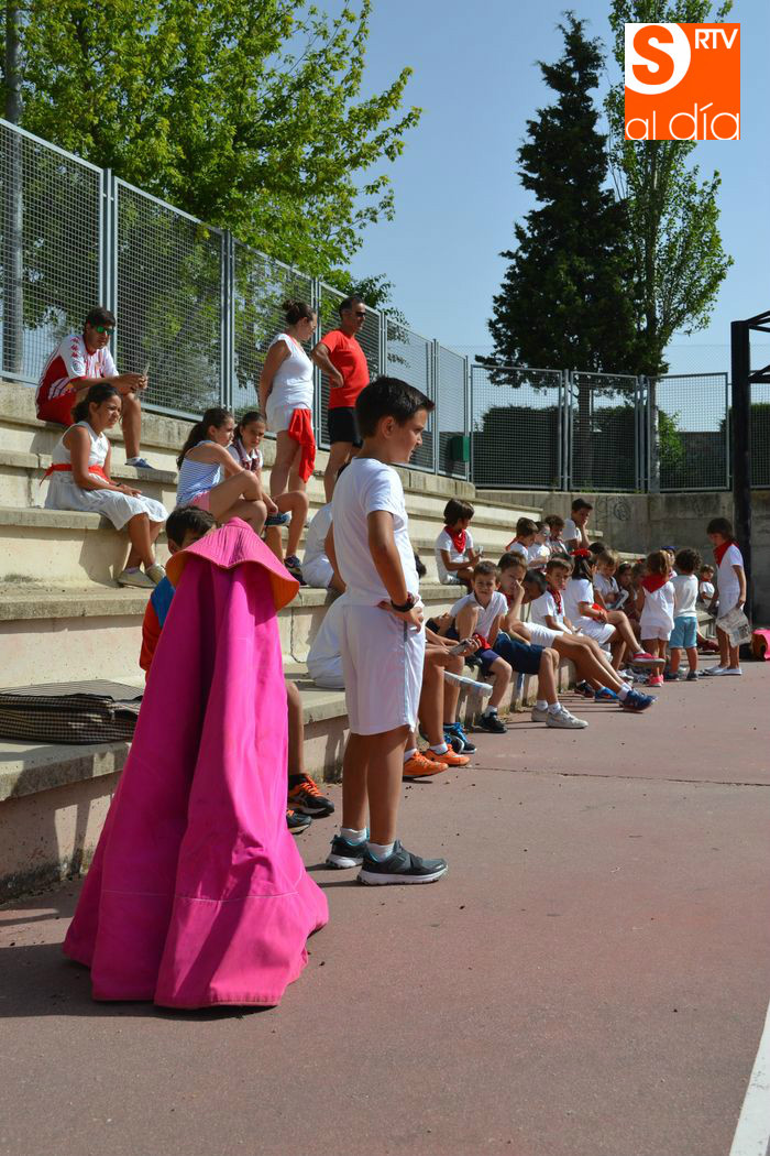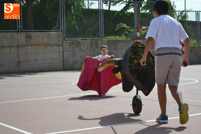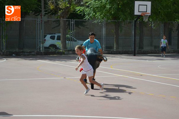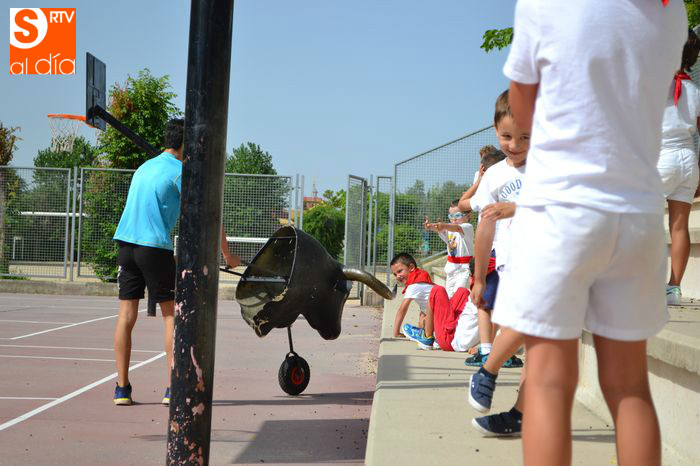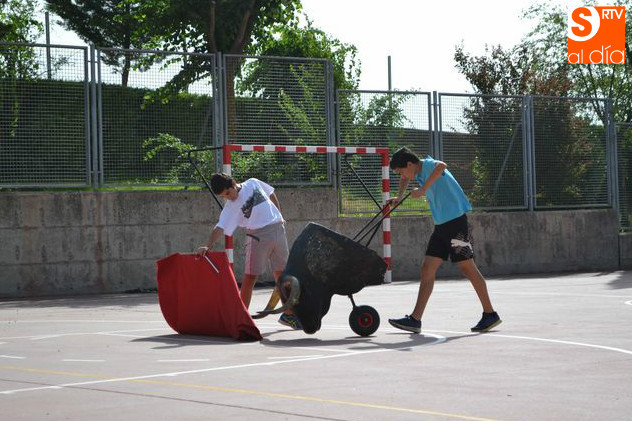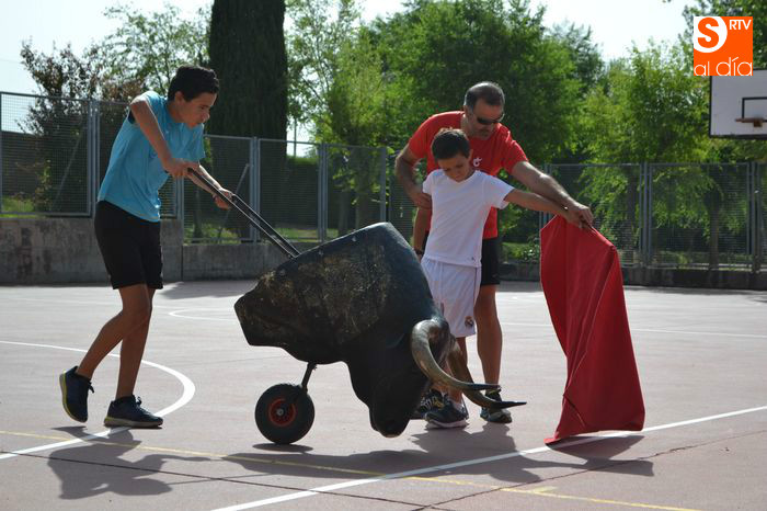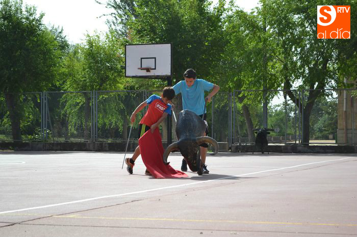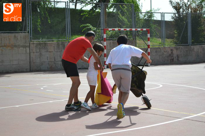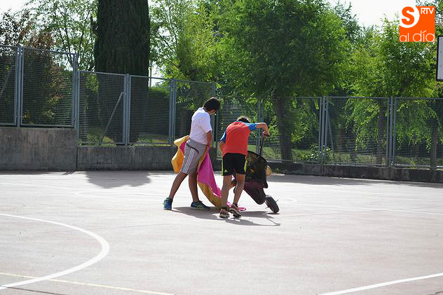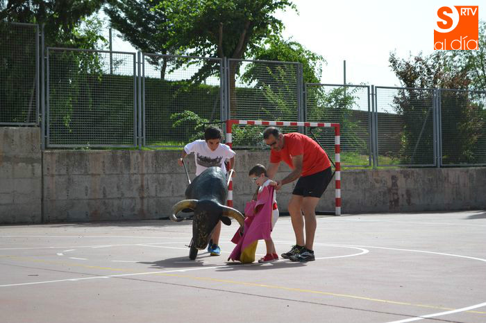 Antes del toreo de salón con las "toras" (las cabezas de toros transportables), ha llegado el momento cumbre de la jornada, donde ha estallado la alegría colectiva: el encierro alrededor del colegio, por los carriles de sombra, así como el posterior toreo en las pistas rojas.