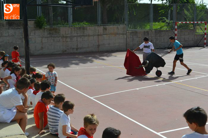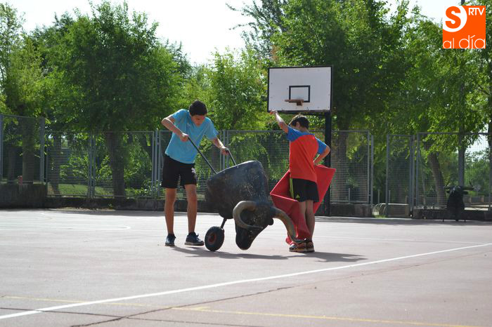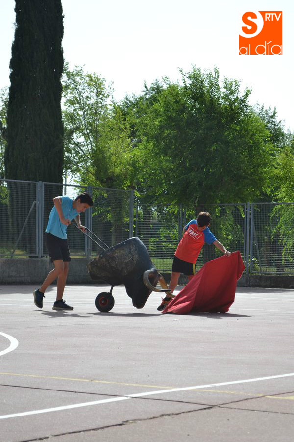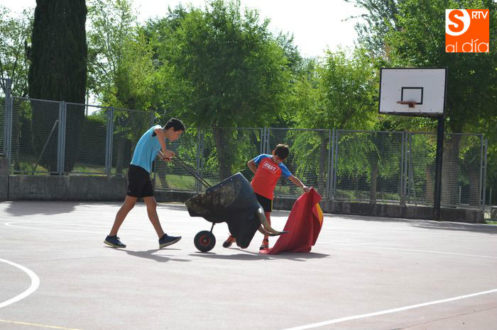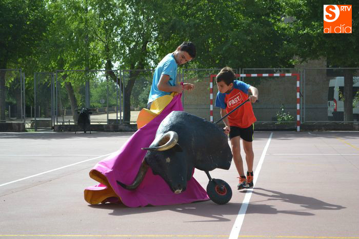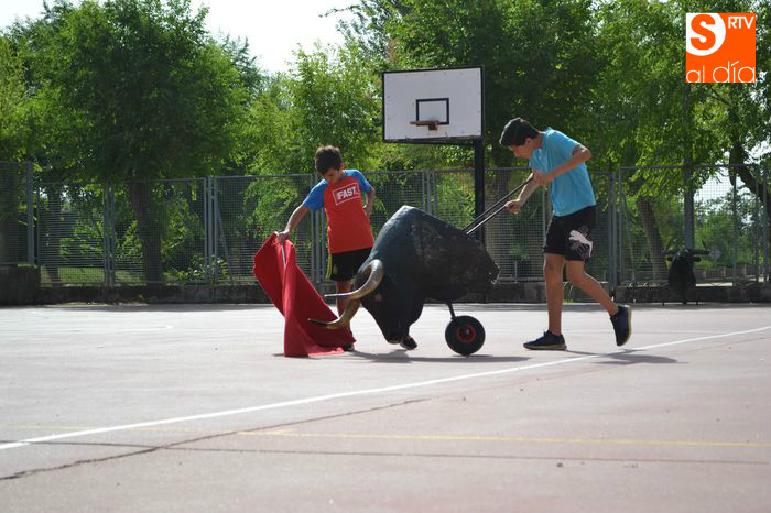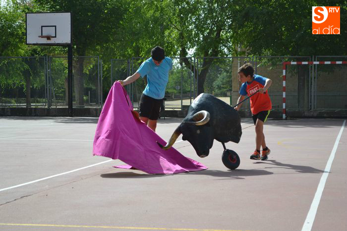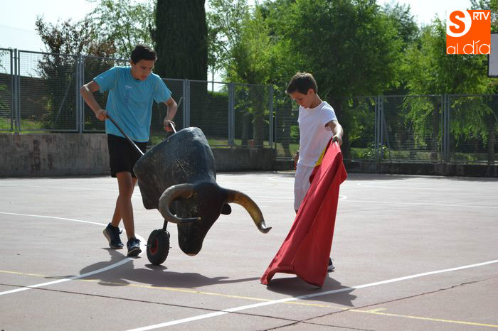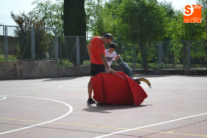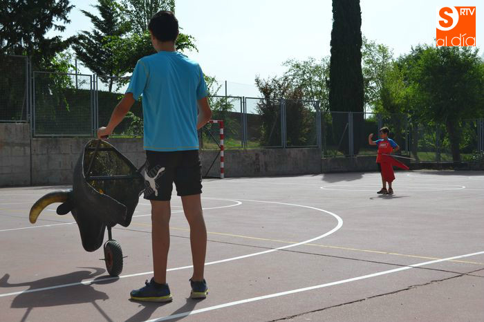 De la mano de los profesores de la prestigiosa Escuela de Tauromaquia de la Diputación Provincial de Salamanca, los niños del Campamento de Verano del Colegio San Agustín han aprendido los conceptos básicos del mundo del toro en el campo y en la plaza, el importantísimo ecosistema de la dehesa salmantina en la economía provincial, el arte del toreo y la pasión por una de las fiestas más arraigadas de nuestra provincia y España. Pero sobre todo se han divertido. Una mañana en la que se han subrayado los aspectos que sustentan a la atauromaquia: Tradición y fiesta, arte y naturaleza, destreza y valentía, preparación física y concentración, cultura y medio ambiente, riqueza de lenguaje.