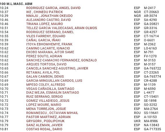 El campeonato comenzará el próximo sábado 23, precisamente con la primera carrera de los 100 metros lisos a las 10:00 horas. La siguiente será a las 11:35 horas. Por la tarde se disputarán las semifinales a partir de las 19:35 horas, mientras que la final tendrá lugar a partir de las 21:00 horas. Para más información sobre horarios, pueden consultar la página oficial del 96º Campeonato de España Absoluto de Atletismo.