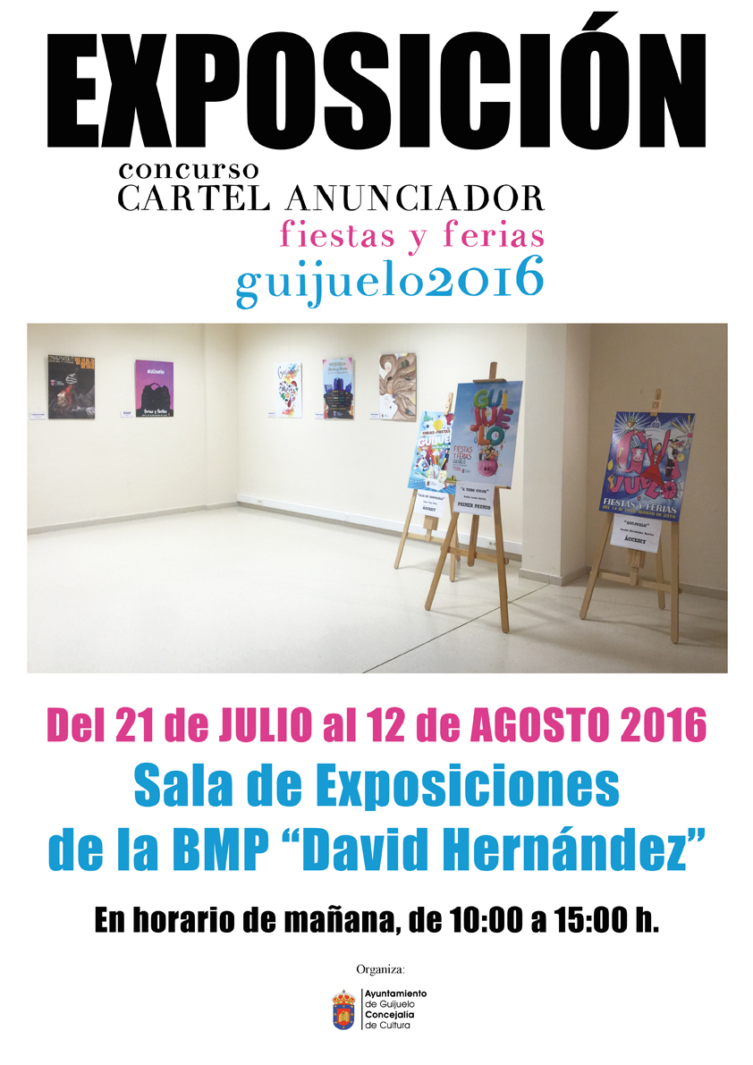 La sala de Exposiciones de la Biblioteca Municipal 'David Hernández' acoge desde hoy la muestra en la que se podrán ver las obras ganadoras del certamen del cartel anunciador de las Fiestas y Ferias 2016.