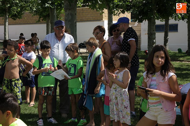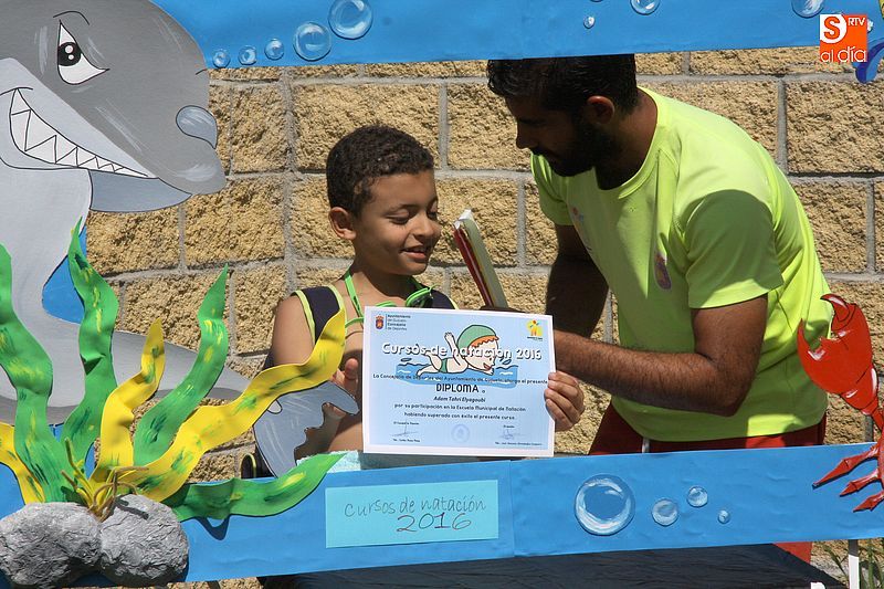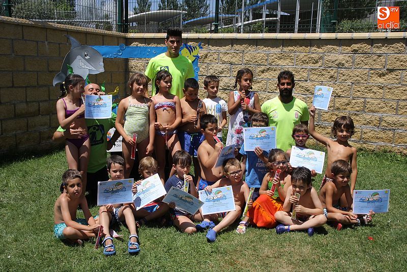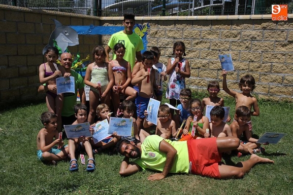 Esta mañana se llegó al final del primer turno de los cursos de natación promovidos por el Ayuntamiento. Como es tradicional, los jóvenes participantes celebraron el final de las clases con el acto de entrega de diplomas. Los principales usuarios de estos cursos de iniciación y perfeccionamiento de natación son chicos de entre seis y 11 años, aunque también hay muchos adultos que repiten el cursillo cada año.