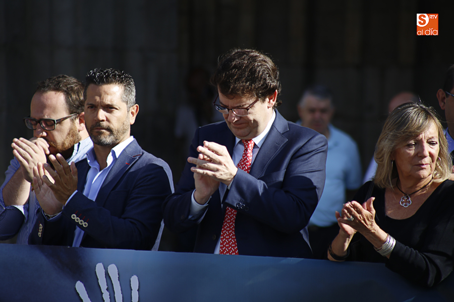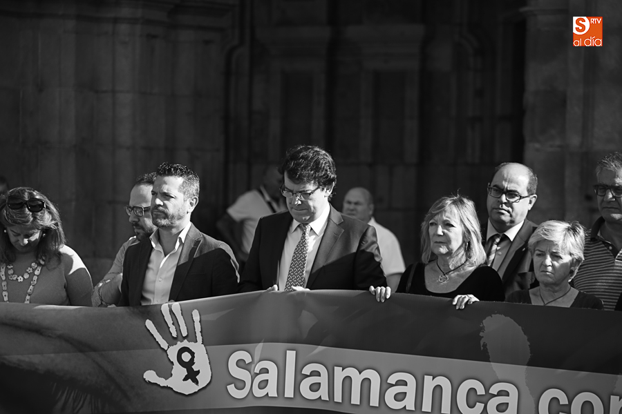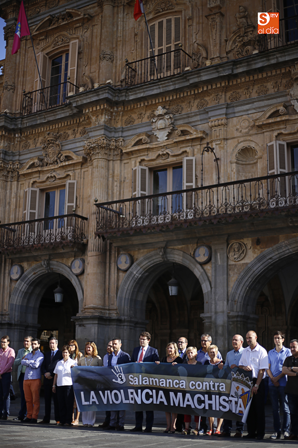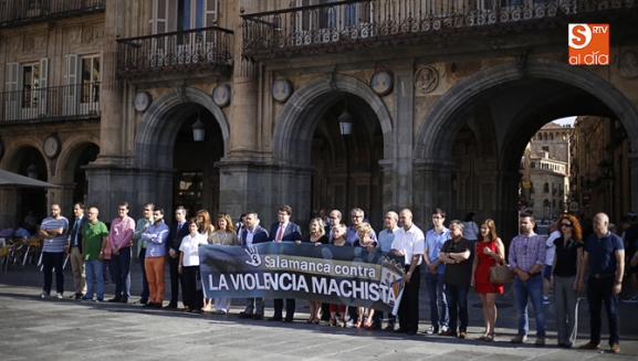 Miembros de la Corporación Municipal se han concentrado en la Plaza Mayor, para guardar un minuto de silencio por la última víctima de violencia machista.