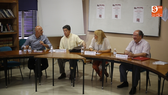 En esta jornada intervenían: Enrique Cabero Morán (profesor de Derecho del Trabajo en la Universidad de Salamanca), Inmaculada Cid López (presidenta de la Asociación de Vecinos ZOES), Elena Martín Morollón (presidenta de la Asociación Salmantina de Periodistas) y José Luis Hernández de Luz (inspector de Trabajo).