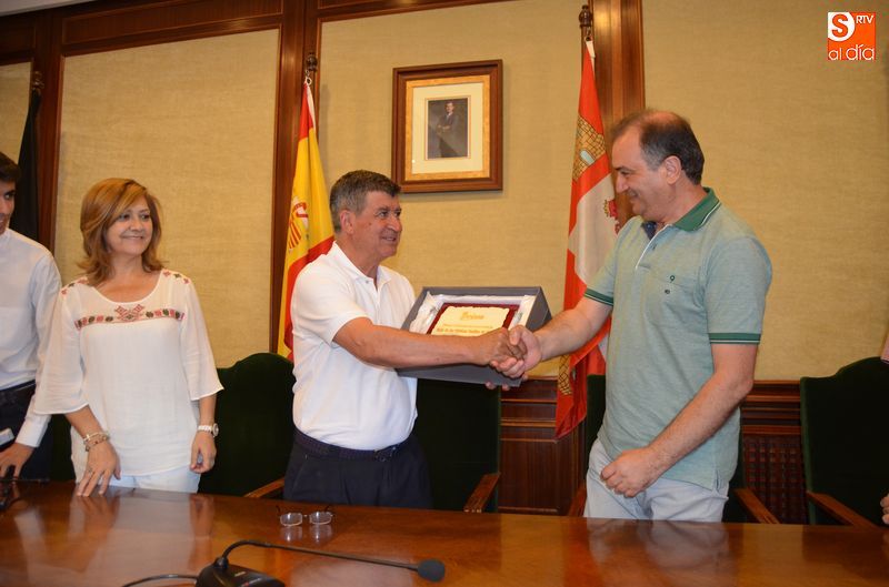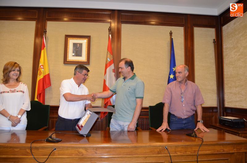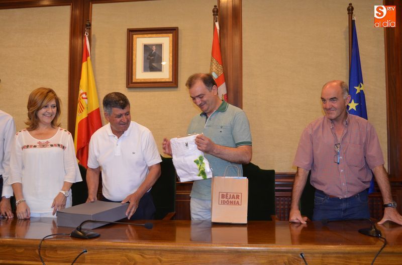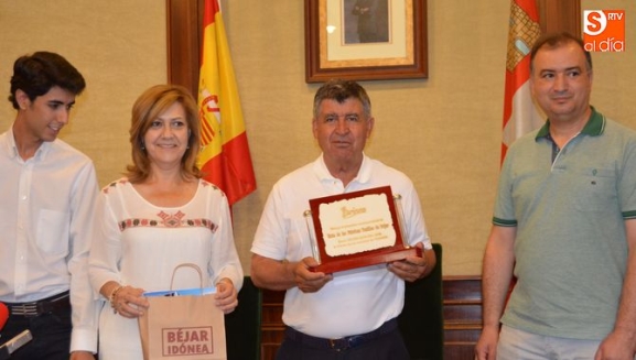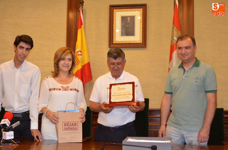 Javier Sánchez, director de la agencia Turinea ha entregado al Alcalde de Béjar una placa que acredita el reconocimiento de los usuarios del portal web especializado en turismo temático, los cuales han elegido a este paseo fluvial bejarano como el mejor de este año.