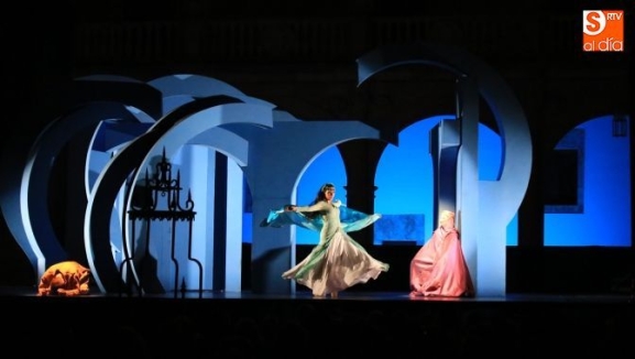 La compañía Salvador Collado ha puesto en escena en Fonseca el espectáculo 'Escrito en las estrellas', dirigido por Emilio Gutiérrez Caba y basado en "El amante liberal", de Miguel de Cervantes. Los espectadores han asistido a una obra en la que el propio Cervantes, desde su cautiverio en Argel, narra a una mujer la historia de amores y cautivos "El amante liberal".