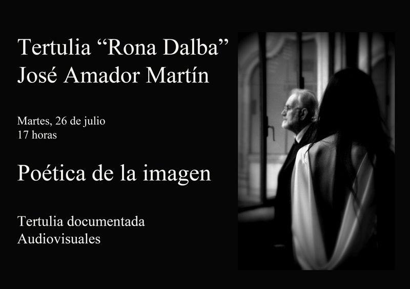 El próximo martes día 26 de julio, a las 17:00 horas, la tertulia Rona Dalba, que se celebrá en el hotel del mismo nombre (plaza de San Juan Bautista, 12), tendrá como invitado a José Amador Martín, poeta y fotógrafo.