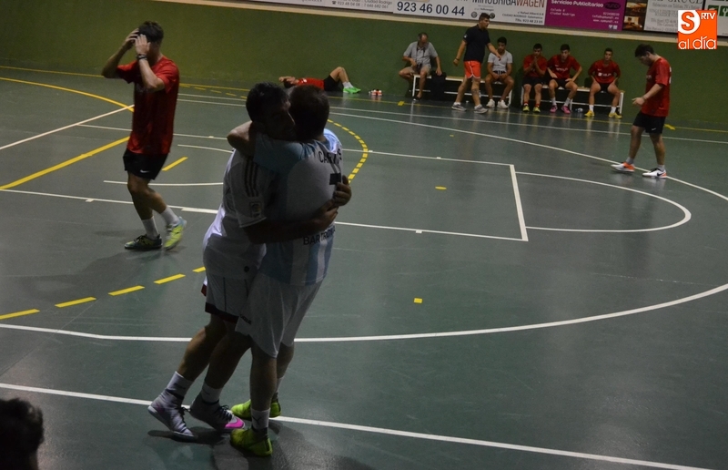 Peluquería Esalza intentó reaccionar rápido, pero dos buenas ocasiones de Raúl y Cristian las desbarató el portero rival. Juanfran estrelló el balón en el larguero en el 8', antes de que Alberto fusilase en el 12' a Héctor con un balón que le había quedado franco al borde del área. Poco después, Héctor salvó una contra muy clara de Juanfran.