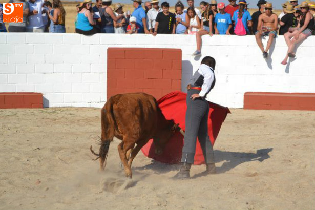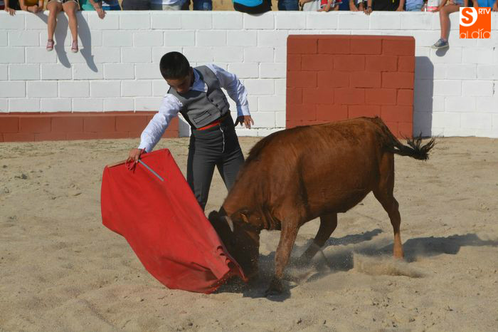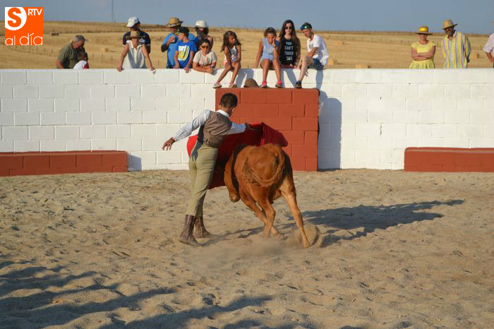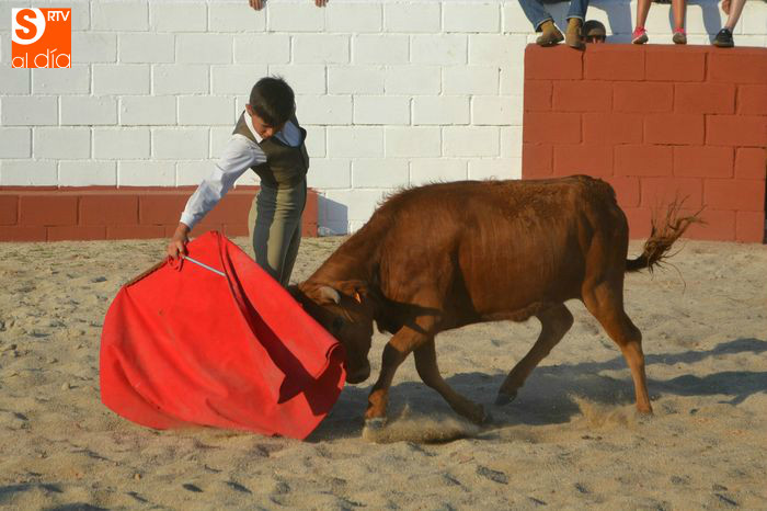 Los chicos dieron la talla destacando profundos derechazos de Antonio que le correspondió en turno la vaca menos agraciada, se revolvía rápido y embestía a media altura, Valentín dio largas y buenas tandas por ambas manos, de Ismael destacó sobre todo la disposición y la raza con la que se metió a muchos de los allí presentes en el bolsillo además de la limpieza de las verónicas con las que recibió a la añoja, Josu bailó con la mejor de la tarde y la exprimió de principio a fin con muy buenos naturales y finalizando con un toreo de cercanías de esos que hacen que los tendidos se llenen de murmullos, Daniel puso el broche final a una bonita tarde propiciándole a la última de Gimeno unos naturales muy puros y de largo recorrido los muletazos que dio con la diestra. Todos ellos finalizaban su vaca simulando la suerte máxima del toreo, la suerte de matar.