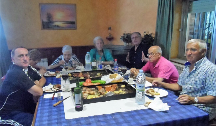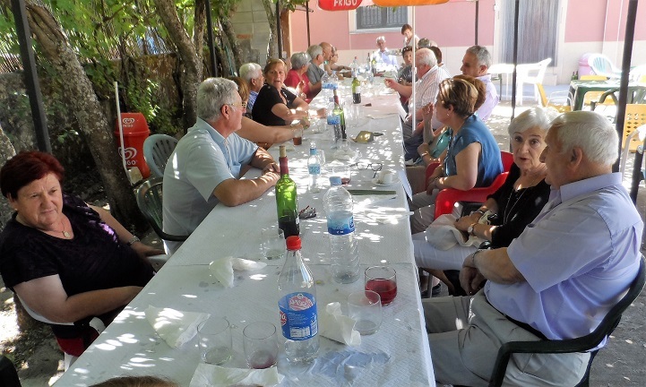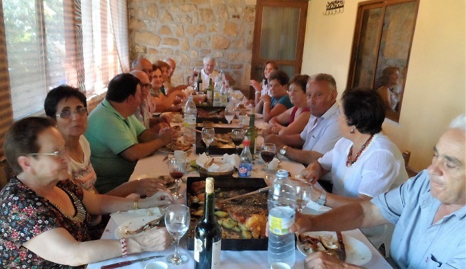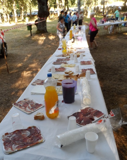 La jornada de convivencia comenzó con una sesión de acordeón, a la que siguió un aperitivo y baile. Tras la comida repartidos por restaurantes de la localidad, la fiesta continuó durante la tarde en El Bardal con más baile y una merienda con jamón, embutidos, queso, vino y sangría.