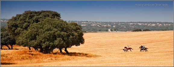 La 'Mirada' de SALAMANCArtv AL DÍA al final de julio vuelve al Campo Charro, inagotable fuente de belleza. El gran fotógrafo Javier Vegas Rodríguez nos regala esta hermosa escena campera, de acoso y derribo entre tierras de cereales y encinares, en Matilla de los Caños del Río.