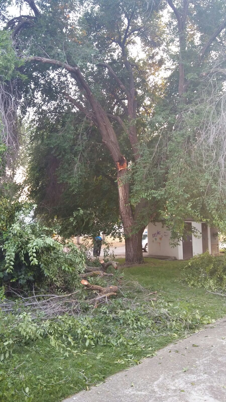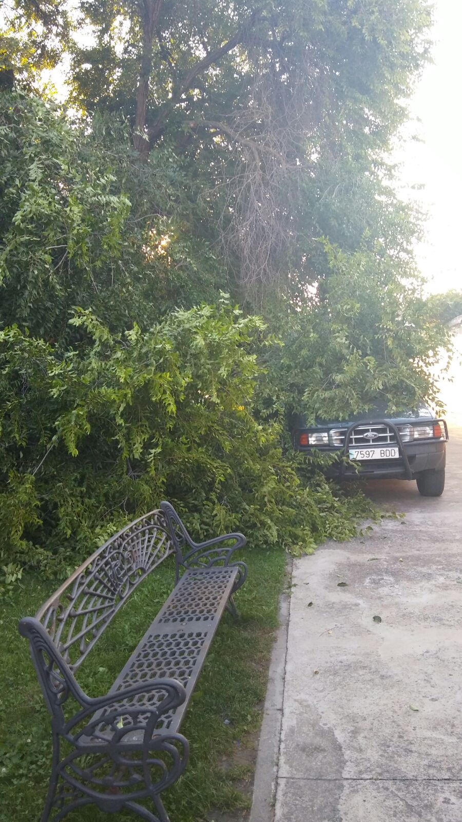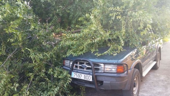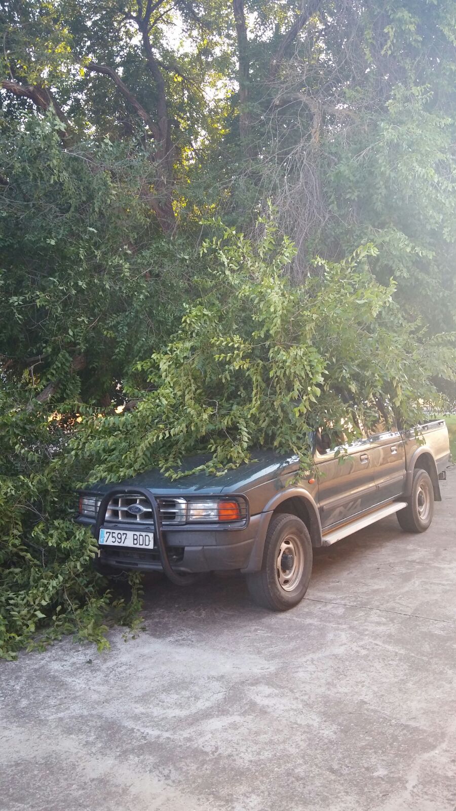 Como se puede apreciar en las imágenes, a la hora de empezar a ceder desde el árbol, la rama quedó cubriendo casi por completo una pick-up aparcada en uno de los laterales de la vía. Finalmente se procedió a cortar la rama por completo del árbol, dividiéndola en varias partes.
