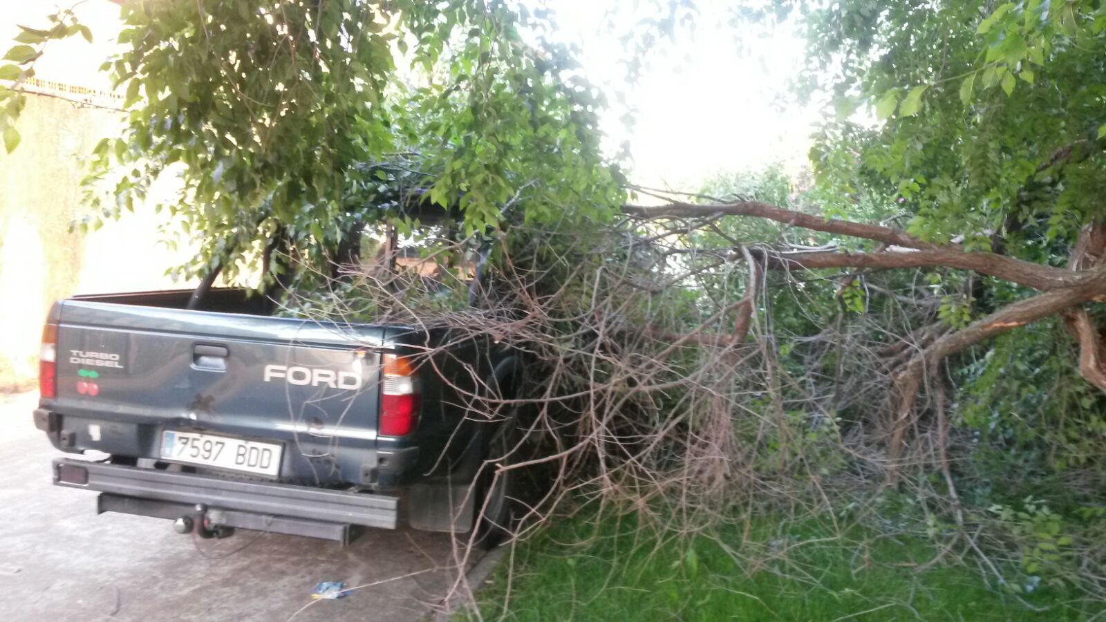 CIUDAD RODRIGO | Tras empezar a ceder, la rama cubrió casi por completo una pick-up aparcada en la zona