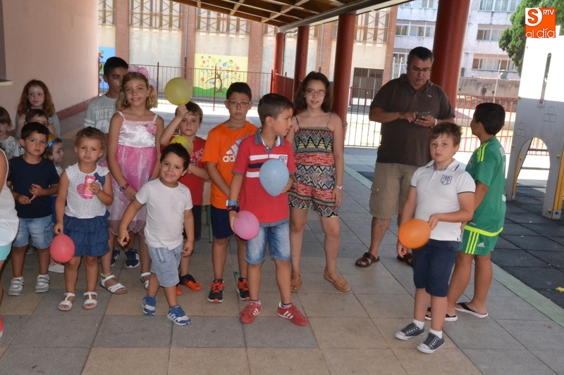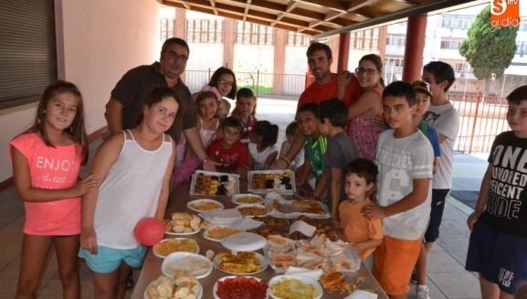La jornada final de Conciliamos en Verano tuvo como es habitual una fiesta con convite incluido, cuyos productos fueron aportados por las familias de los niños apuntados al programa. Como novedad respecto a ediciones anteriores, este año el convite contó también con pasteles gracias a Pastelería Etreros.