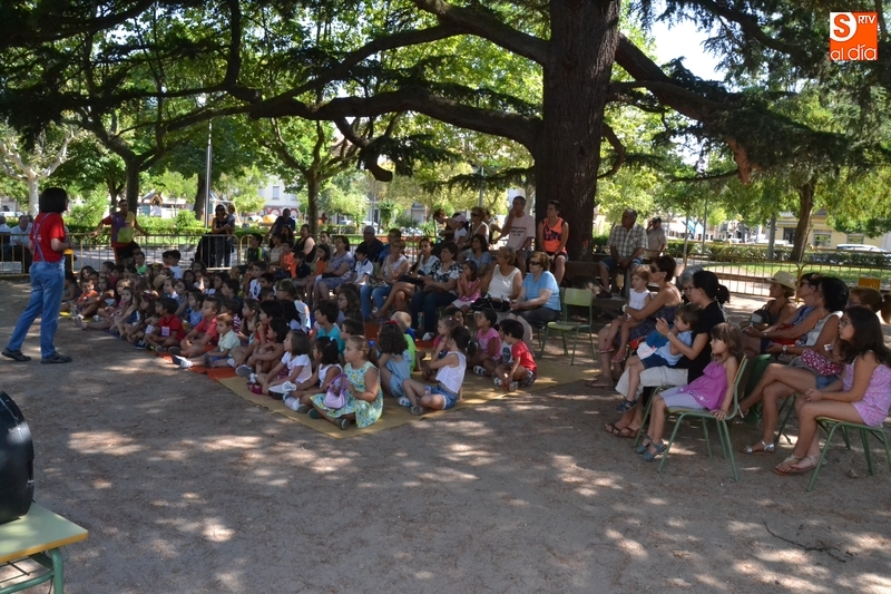 El entorno del templete del Parque de La Glorieta de Ciudad Rodrigo se volvió a convertir en la mañana del viernes en escenario teatral gracias al programa de animación infantil Explorador@s en La Glorieta que coordina Civitas Animación Teatral. Como todos los viernes del programa, el teatro fue el protagonista con una sesión abierta a todos los niños que quisieron asistir.