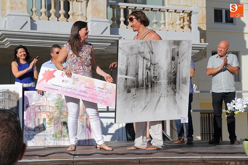 Al igual que la pasada edición, el artista cordobés Daniel Parra Lozano, se alzó con el primer premio del certamen, dotado con 1.500 euros, con una particular visión de la calle Alfonso XIII en la que la iglesia parroquial de la villa poseía gran protagonismo. El cuadro, pintado a carboncillo estaba en la mente del artista desde el pasado año: "Ya me di cuenta el pasado año que esa calle tenía algo especial, sobre todo por la presencia de la iglesia, así que me decidí a pintarla este año. Opté por una imagen en blanco y negro, utilizando técnicas de carboncillo, porque mis inicios fueron de ilustrador, y tenía muy claro el estilo que quería para esta obra. En cierto modo es conceptual, puesto que hay partes que si se observan independientemente del resto no se reconocen, es necesario verla en conjunto, que es cuando adquiere mucha profundidad". La concejala de Cultura, María Jesús Moro, agradeció a los participantes, al numeroso público y al jurado su participación en la cita: "Creo que este certamen va ganando cada año, tanto en calidad como en renombre y es gracias a los artistas que confían en nosotros y al jurado, especialmente a nuestro vecino José Antonio Muñoz Bernardo, por participar juzgando las obras. También es muy satisfactorio ver que el público sigue interesándose por el arte y la cultura en la villa".