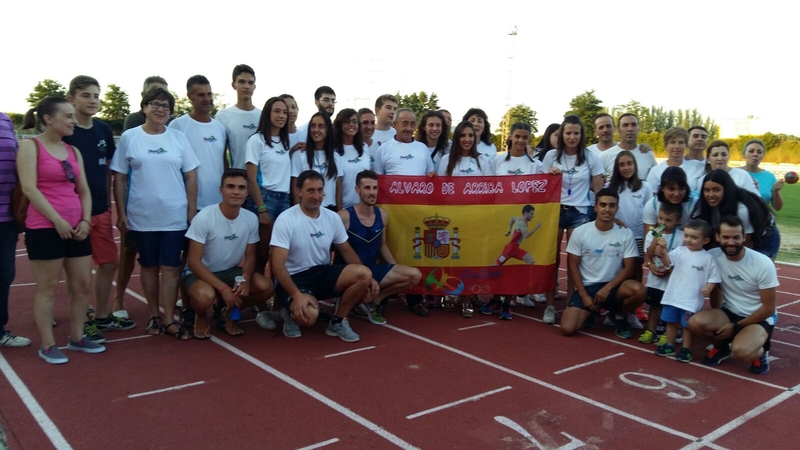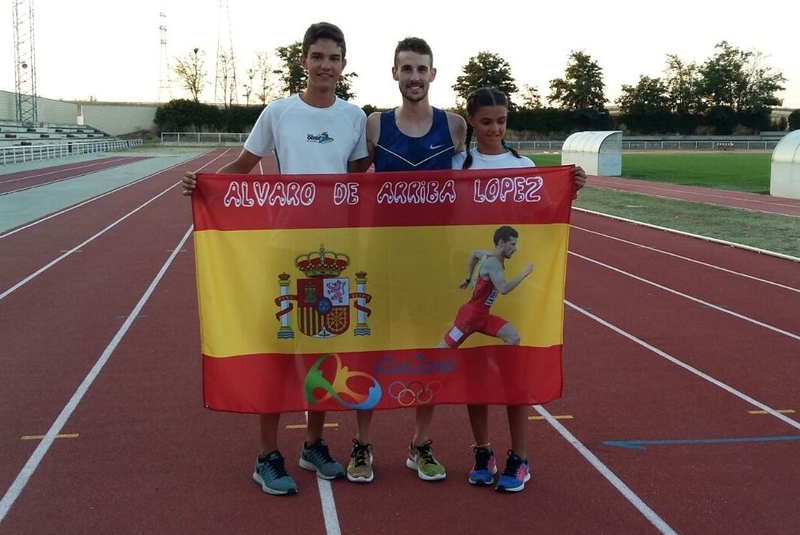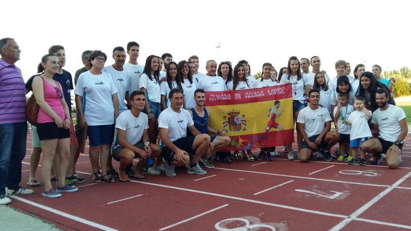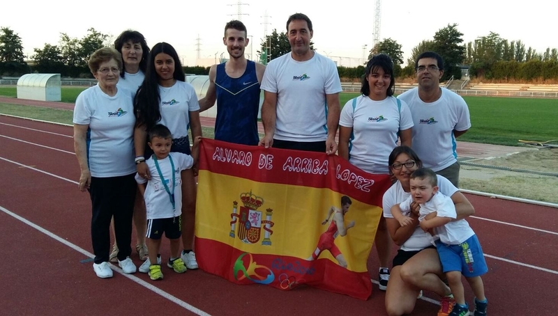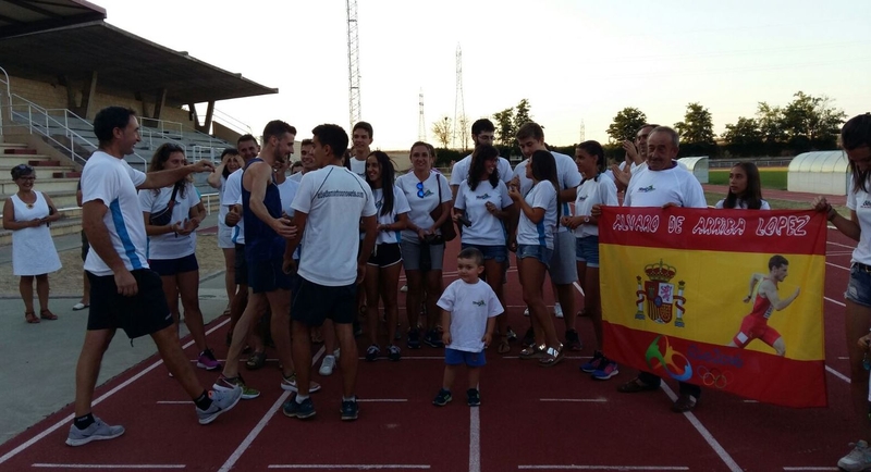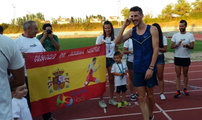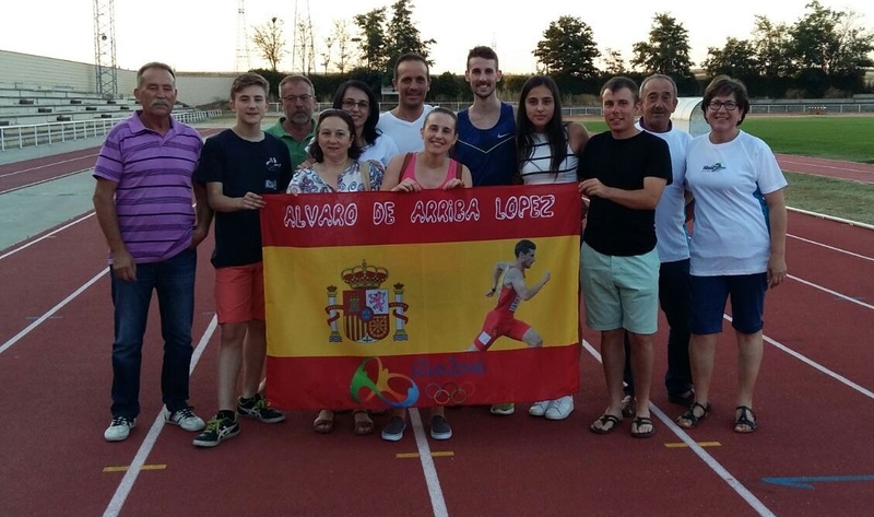 Familiares y amigos (entre ellos sus compañeros habituales de entrenamiento) de Álvaro de Arriba se dieron cita en las pistas a la hora de conclusión del entrenamiento para brindarle una despedida por todo lo alto y desearle la mejor de las suertes en la aventura olímpica. Su entrenador de toda la vida, Juan Carlos Fuentes, viajará a Río de Janeiro el miércoles 10, dos días antes de su debut.
