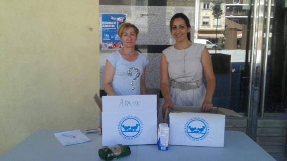 Las concejalas Yolanda Alonso y Mayte Montero en el stand de recogida de comida. Foto. Ayto. de Guijuelo.