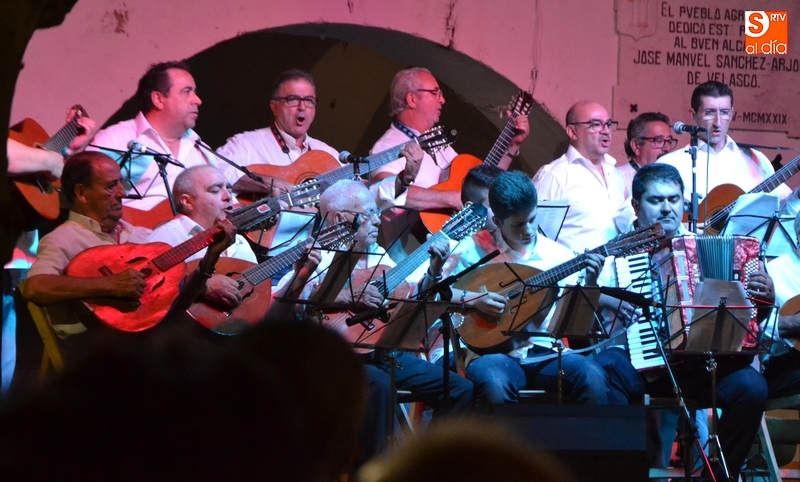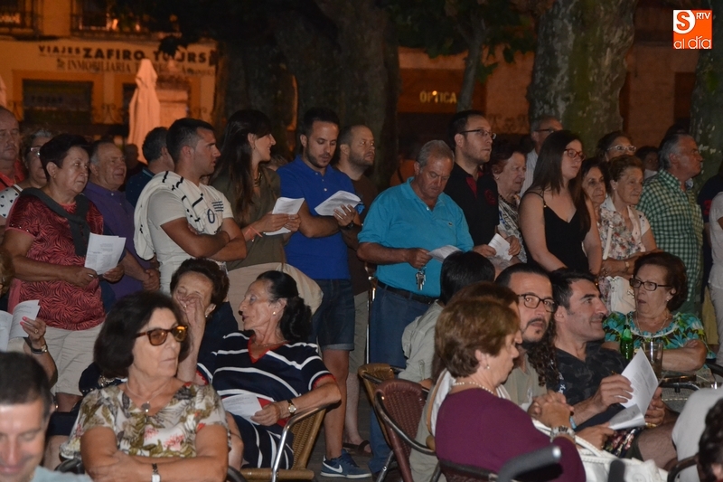 En el concierto de la noche del viernes, la Plazuela del Buen Alcalde se abarrotó para disfrutar de letras clásicas de la Rondalla, que tuvieron como especiales destinatarios -como apuntó uno de los murguistas, Nicolás de Elías, al inicio del concierto- los conocidos como 'mirobrigenses ausentes', es decir, aquellas personas originarias de Ciudad Rodrigo que ahora residen fuera que únicamente 'vuelven a casa' en verano, y no les ven en otros momentos que actúan como en Carnaval.