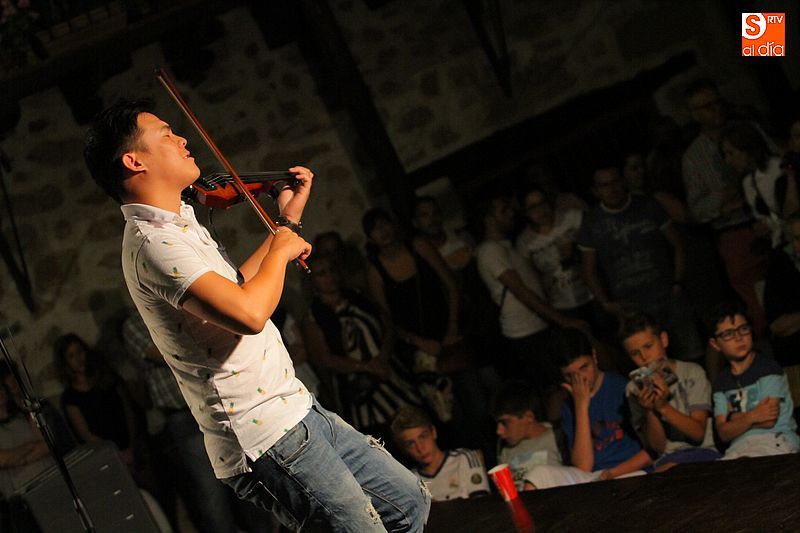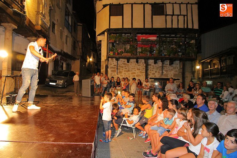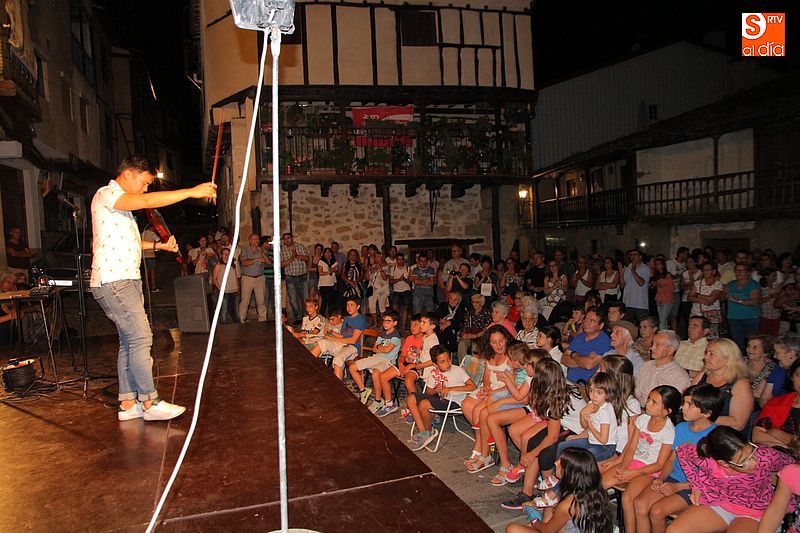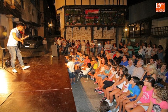 La plaza Mayor de San Esteban de la Sierra se convirtió una vez más en escenario de espectáculos en plenas fiestas en honor a San Esteban Protomártir, fiesta chica de la localidad. En esta ocasión se pudo disfrutar de una particular versión del conocido concurso de televisión 'Un, dos, tres' ambientado en la propia localidad. Varios equipos de vecinos subieron al escenario para participar en el divertido juego, organizado por la Asociación El Álamo, que contó con un numeroso público que llenó el ágora. A continuación, llegó el turno de la música a cargo del violinista Javi Lin. Conocido por sus apariciones en televisión, el músico salmantino demostró su habilidad con el instrumento interpretando conocidas piezas de bandas sonoras y conocidos artistas del panorama musical.