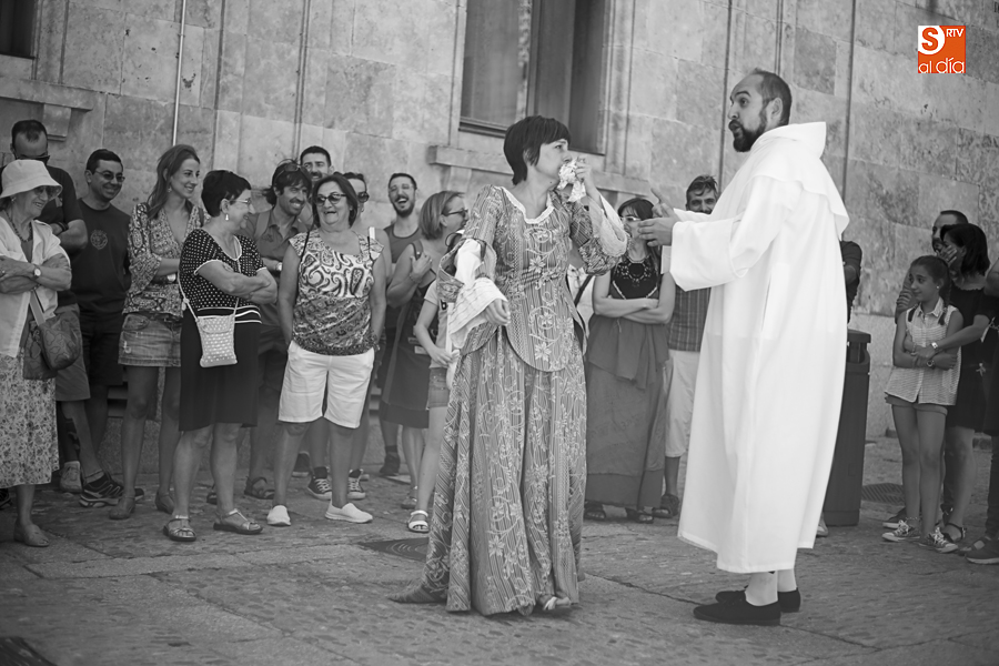 La plaza del Concilio de Trento ha sido el punto de partida de la ruta teatralizada Dominicos, un viaje redondo, con los Absurdos Teatro. Varios personajes han guiado al público en este singular recorrido por la ciudad, realizando un particular homenaje a los padres dominicos.