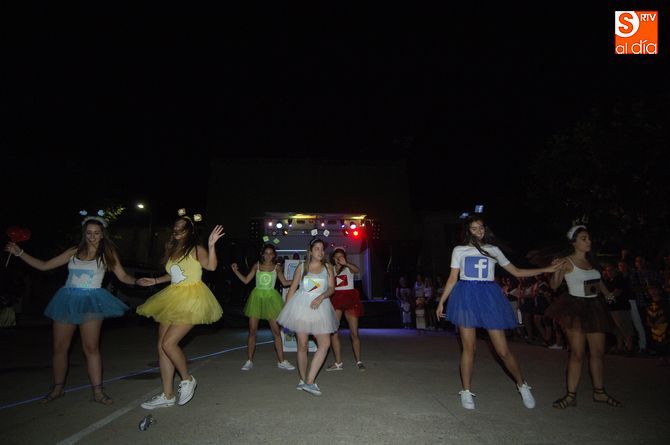 Con la noche ya caída, y después de que en las noches del jueves y el viernes se disfrutase, respectivamente, de una verbena y un karaoke, en la noche sabatina fue turno para disfrutar de un concurso de disfraces, tanto de niños como adultos. Este desfile estuvo lleno de colorido y diversión, llevándose finalmente el triunfo las Enganchadas (a las redes sociales) en la categoría de adultos, y las Mariposas en la categoría de niños.