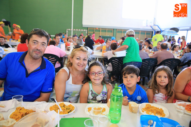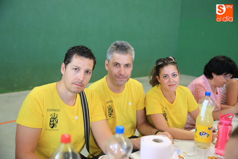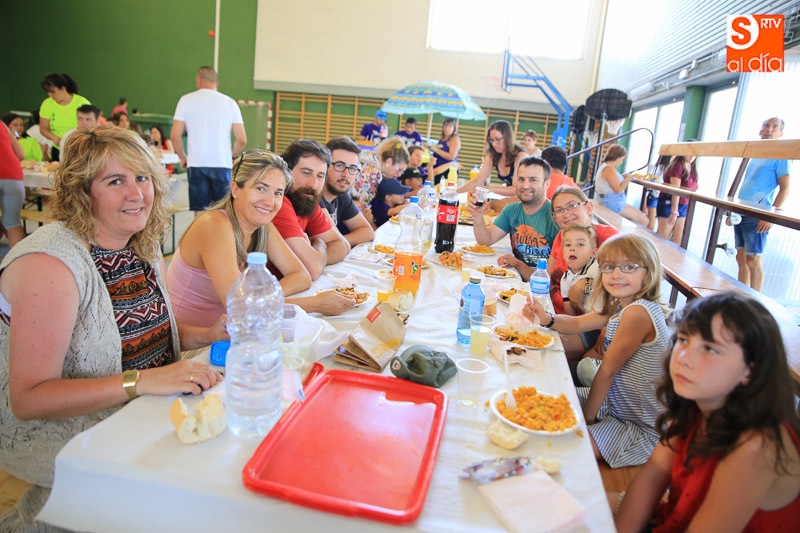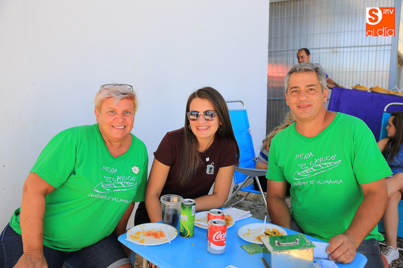 Doñinos de Salamanca sigue de lleno inmerso en las actividades festivas en honor a Santo Domingo de Guzmán. La programación ha tenido hoy su plato fuerte y solidario con una gran paella, cuyos beneficios se destinarán a la AECC. Teatro, música y juegos siguen esta tarde en una localidad que despedirá mañana sus fiestas.