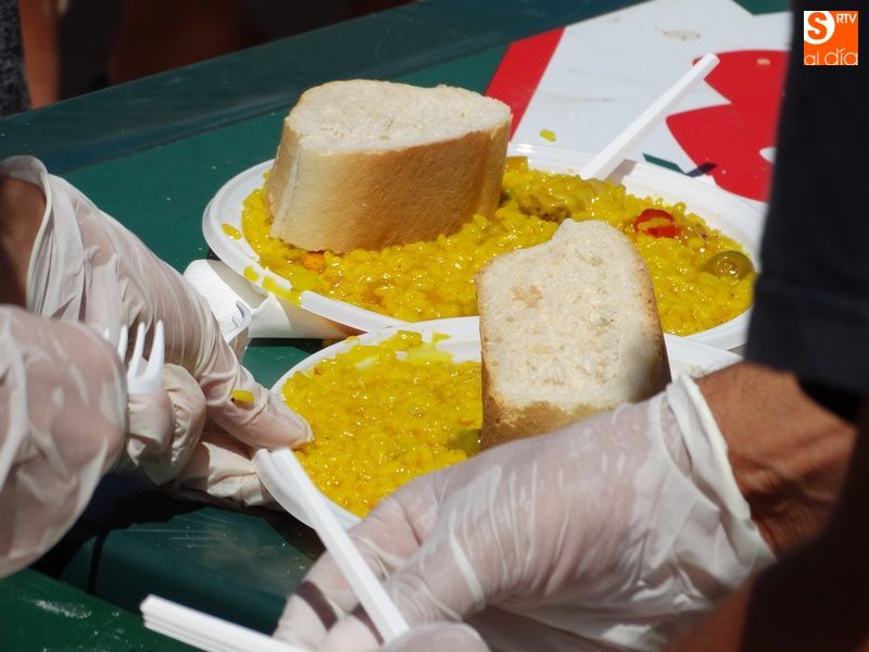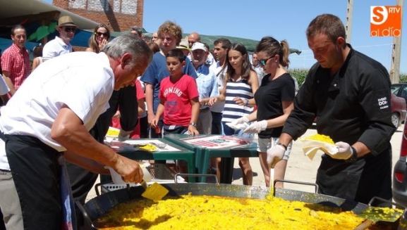 La noche fue larga para muchos de los vecinos de Encinas de Abajo, con la fiesta que duró hasta el amanecer. Así que para reponer fuerzas no había nada mejor que la paellada que han celebrado en las piscinas de la localidad. Protegidos del sol por toldos, han degustado la deliciosa paella en familia o con amigos, antes de continuar las celebraciones con las actuaciones de Rumba Extrés y la gran Orquesta Kronos.