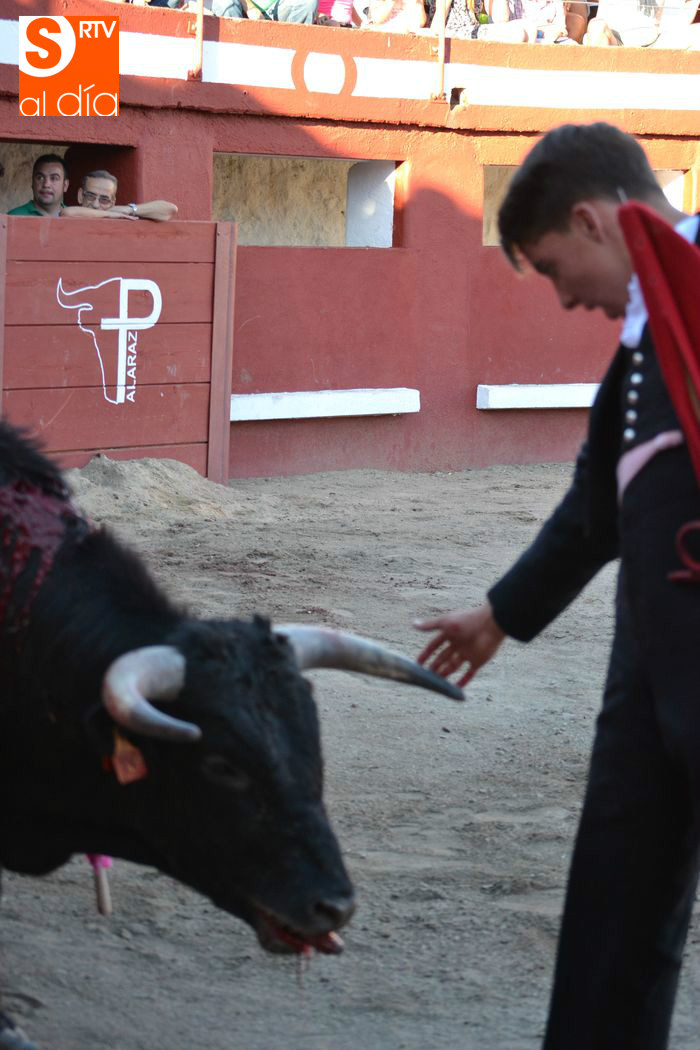 Un evento en el que se lidiaron 4 novillos de la prestigiosa ganadería de Rivera de CampoCerrado, de Martín de Yeltes (Salamanca) a cargo del rejoneador Sánchez de Vega, quien cuajaba una faena con destellos de calidad y soltura en los arranques frente a frente. A el se unieron el espada José Pedro Prados Martín "El Fundi" con calidad y arranques valientes, mientras que los novilleros Marcos Pérez y José Bonilla, dejaron buen sabor de boca sobre el albero de la histórica plaza de Alaraz, demostrando ciertas artes que pueden hacer futuro.