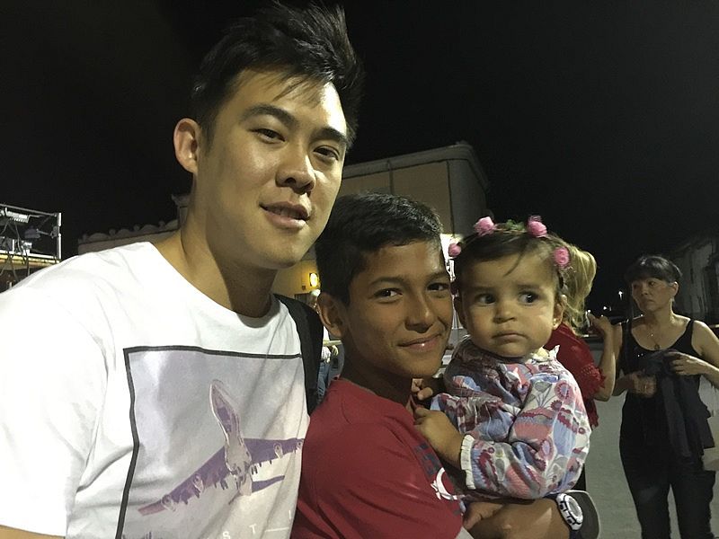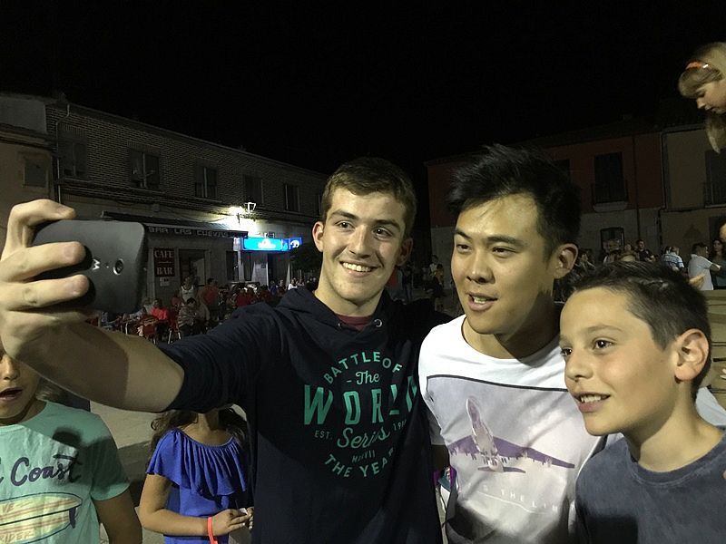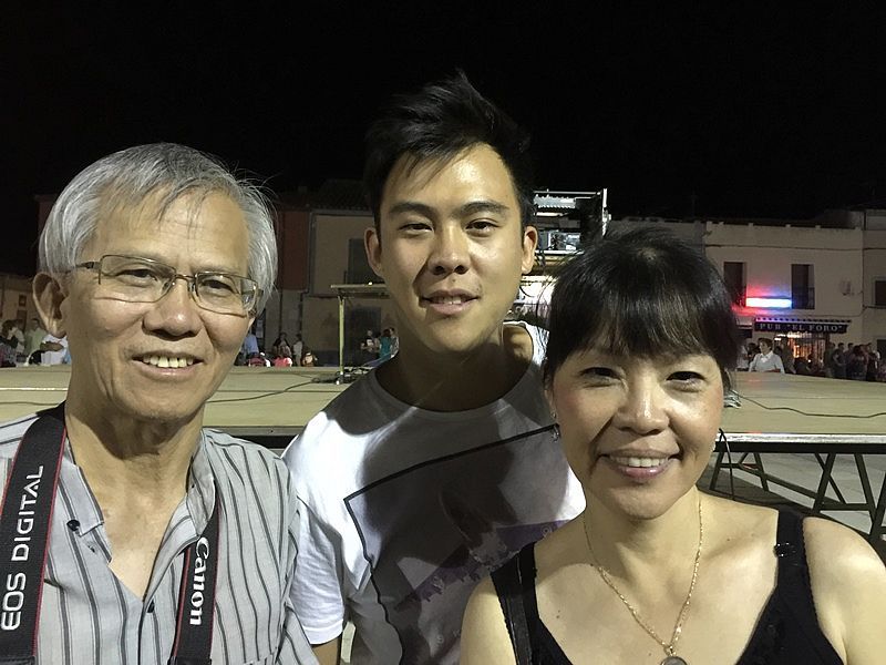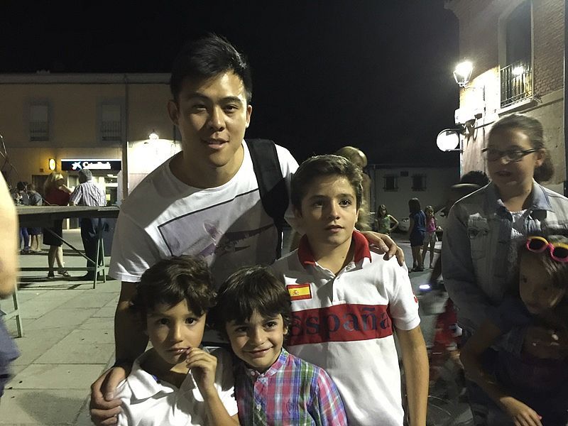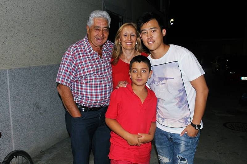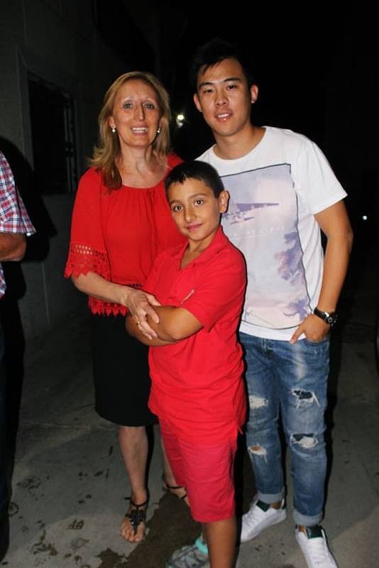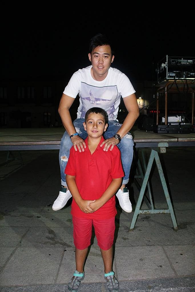 Antes de viajar a Extremadura a su próxima cita, el violinista se fotografió con el que se lo pidió, ante la atenta mirada de sus padres.