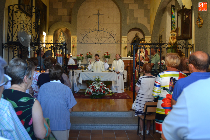 Tras finalizar el recorrido procesional, Fernando García y Lauren Sevillano, párrocos de Peñaranda, celebraron una eucaristía en el pequeño templo, que se quedó pequeño una vez más para acoger a la gran cantidad de fieles que asistieron a la fiesta de esta querida imagen.