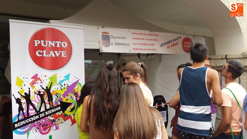 Durante toda la tarde, en la calle Cardenal Pacheco estuvo instalado el ya clásico Punto Clave de la Diputación de Salamanca, para que los jóvenes tomasen conciencia sobre los efectos del alcohol en sus cuerpos.