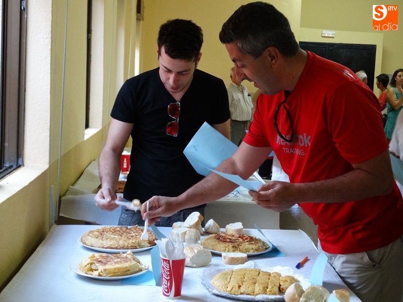Se notaba la tensión en el ambiente mientras el jurado probaba y puntuaba las tortillas y postres presentados al concurso celebrado este miércoles en Alderrubia. Los miembros del jurado apuntaban sus conclusiones tras probar cada plato uno a uno, examinando la presentación y el sabor con mucha atención. Mientras tanto, decenas de vecinos aguardaban el veredicto y el momento de hincar el diente.