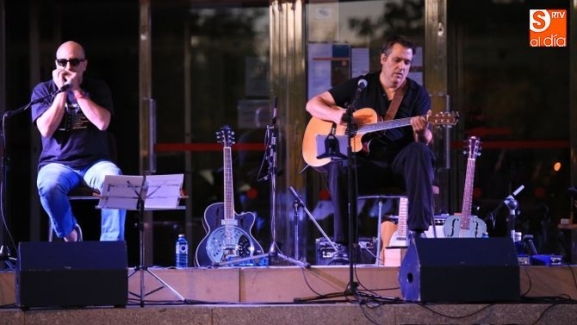 Las actividades de verano organizadas por el Ayuntamiento en el exterior de la biblioteca Gonzalo Torrente Ballester siguen este jueves con el programa 'Verano se escribe con Blues'. Esta noche ha tenido lugar el concierto de The Midnight Songsters, con Juan Albo y Luis Corredera.