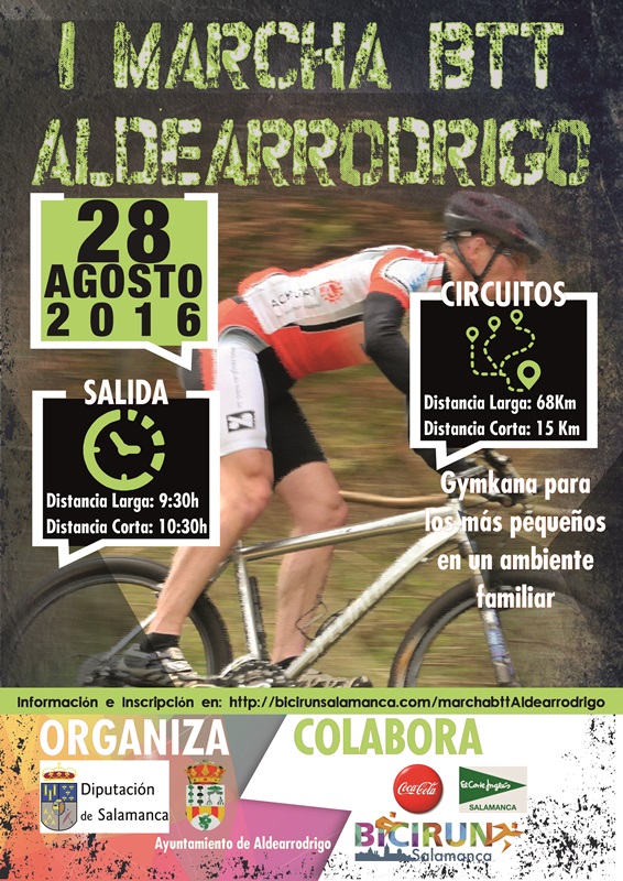 Los interesados pueden inscribirse de forma presencial en el Mesón Tabernero, en la calle Toledo, número 9, o en la siguiente dirección electrónica: http://bicirunsalamanca.com/marchabttAldearrodrigo. El coste será de 12 euros para mayores de 16 años y de 3 para los menores de esa edad. El reglamento y demás cuestiones se pueden consultar en la página web www.bicirunsalamanca.com.