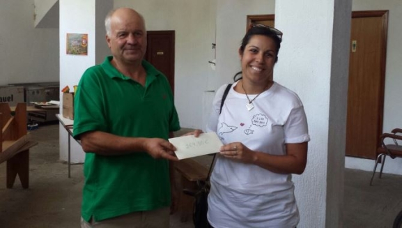 Precisamente, la recaudación obtenida con el mercadillo de este año, 264?, fue a parar a esta Asociación, acudiendo una de sus responsables, Sheila, a recoger el dinero.
