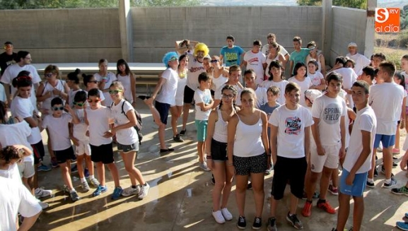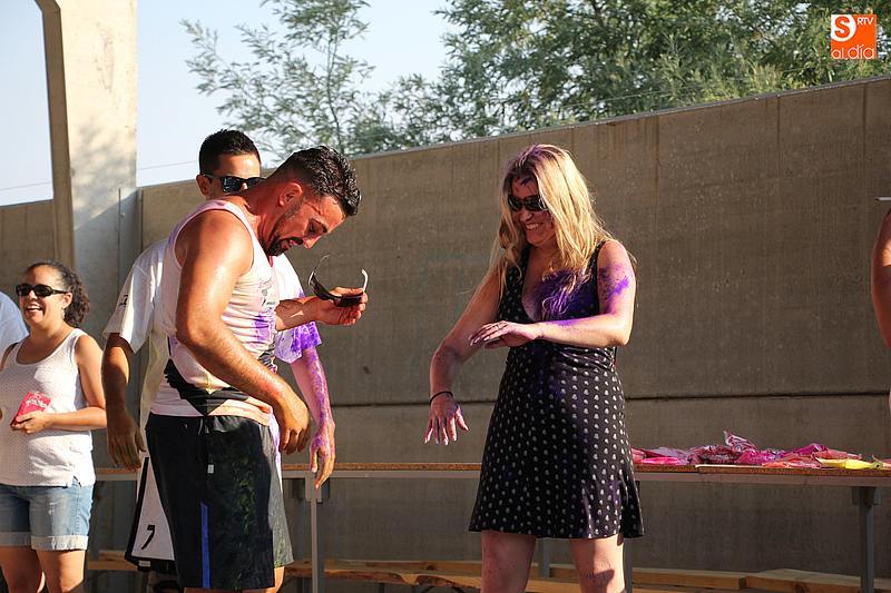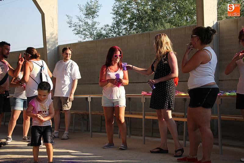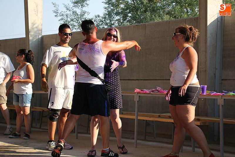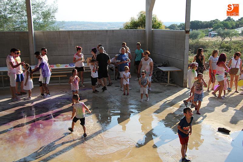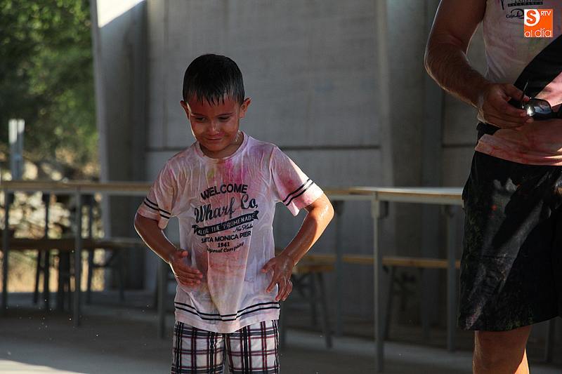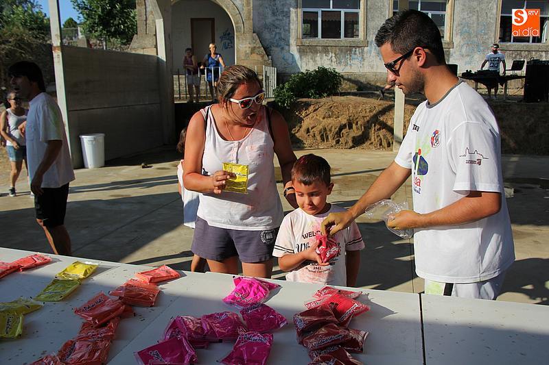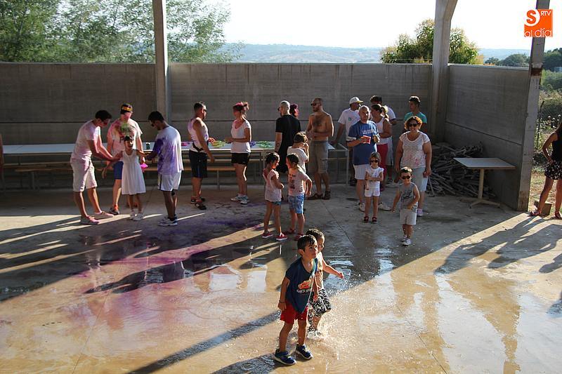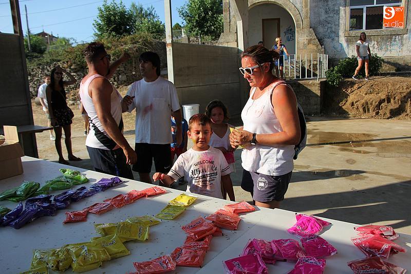Se realizaron dos recorridos, uno para adultos y otro para niños, pero ambos con punto de encuentro en la trasera de las escuelas, donde hubo chapuzón y el lanzamiento de polvos de colores.