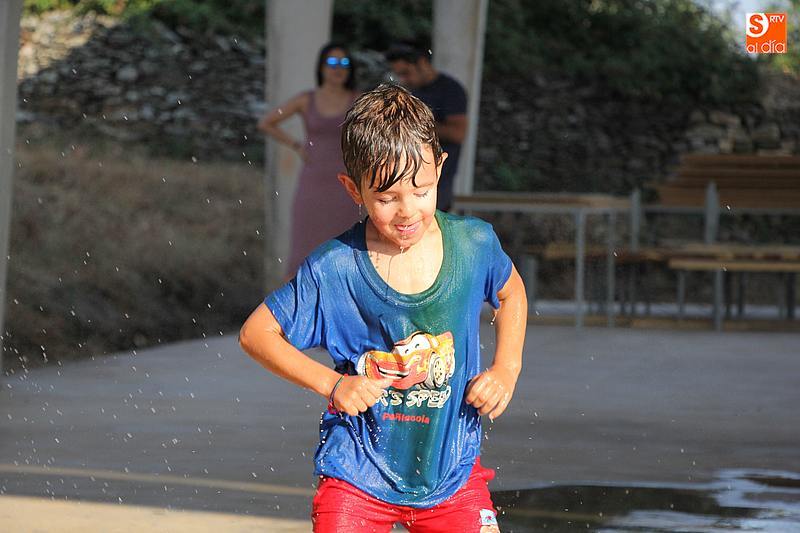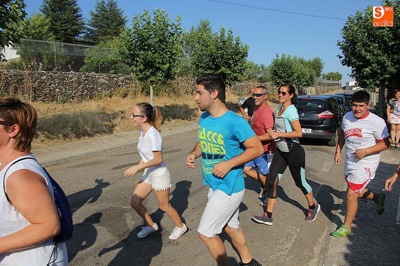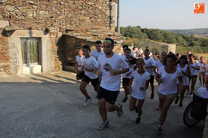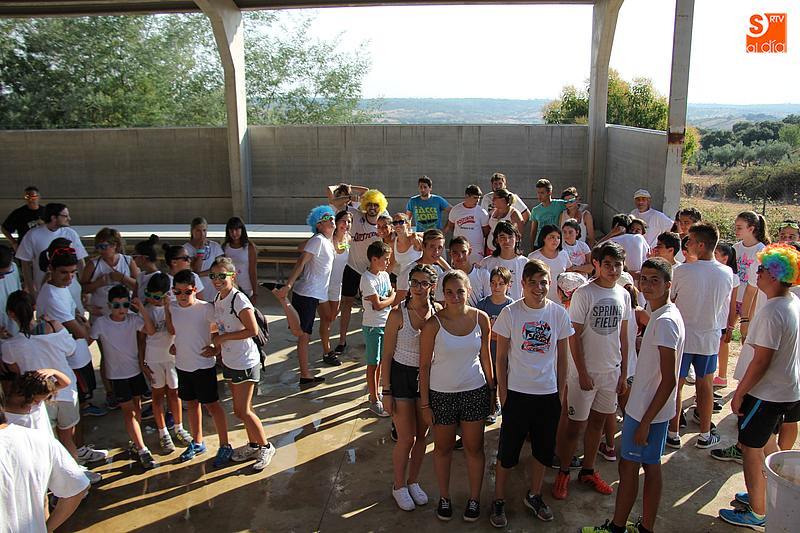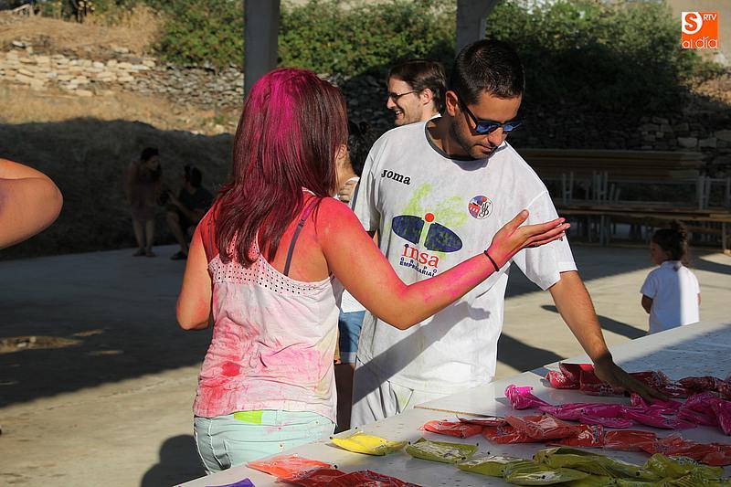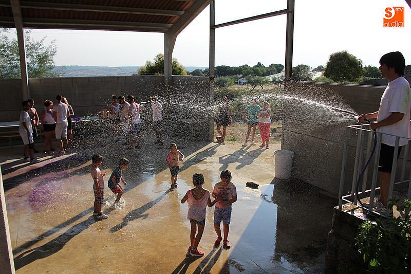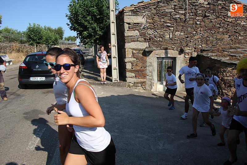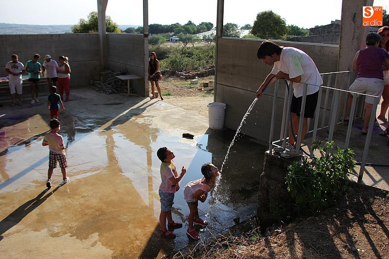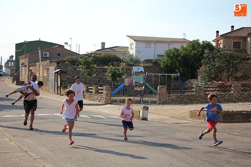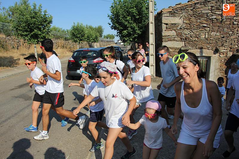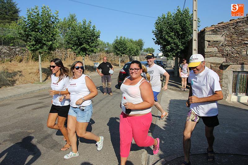 Después del preámbulo en la noche antes con actividades terroríficas para los niños y la concentración de peñas para calentar motores, las fiestas de Bermellar en honor a Nuestra Señora de la Peña de Francia continuaban este viernes pasadas las seis y media de la tarde con una carrera urbana y lanzamiento de colores, una actividad que tuvo como aliciente añadido para los más pequeños los chapuzones con la manguera en la trasera de las escuelas.