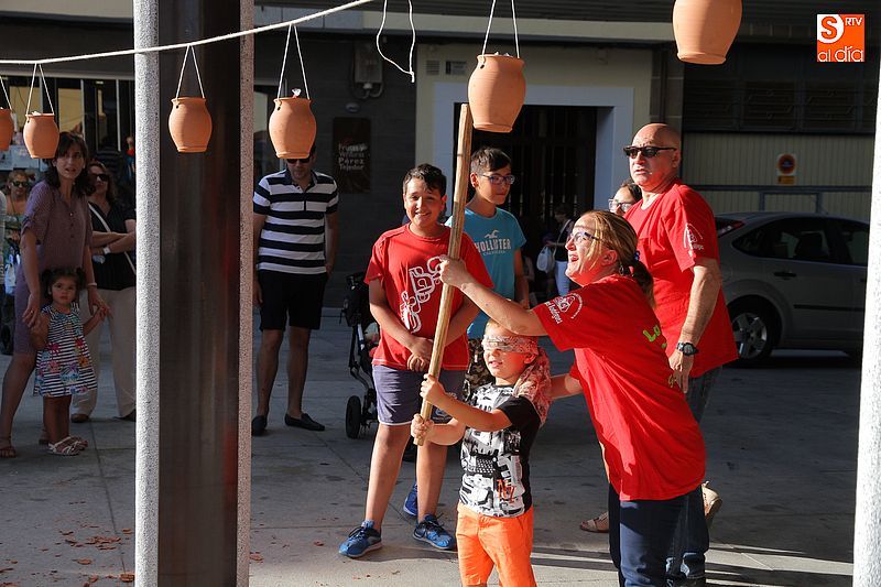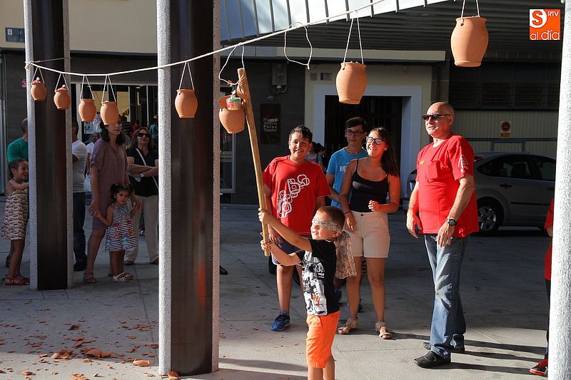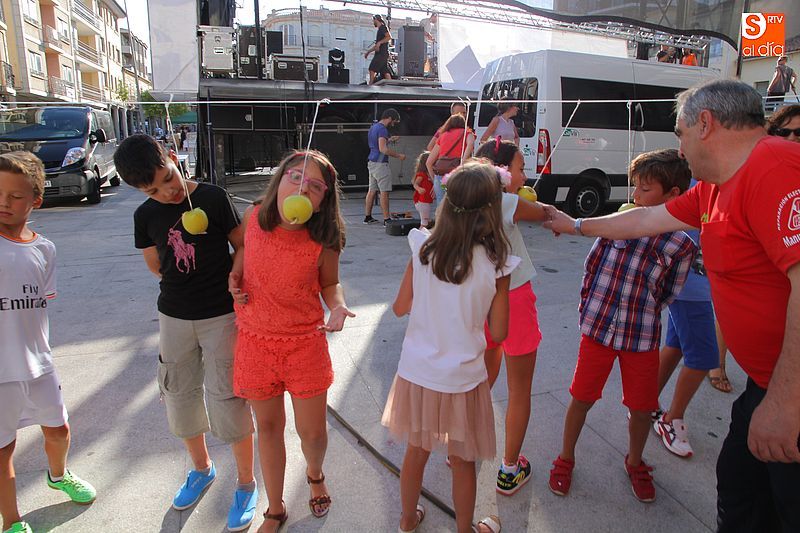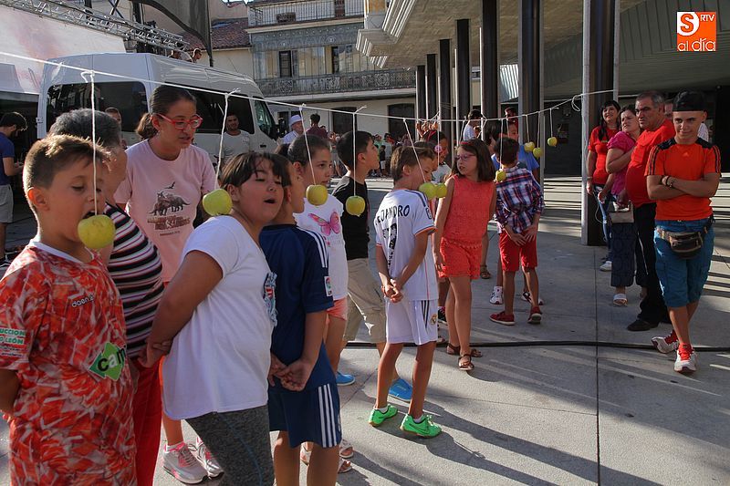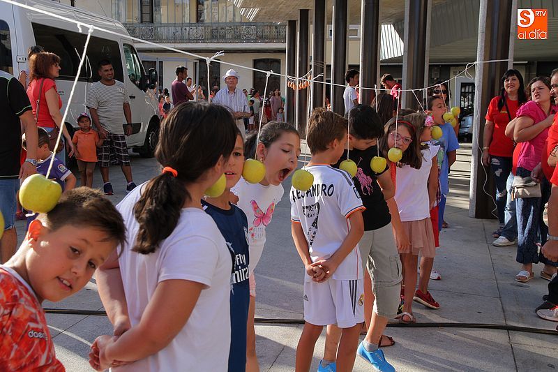 Un verano más, la veterana peña La Pradera, que cumple 40 años desde su creación, ha organizado los tradicionales juegos infantiles que son el preámbulo de la gran cantidad de propuestas que habrá los próximos días para los niños de la villa. Los más pequeños se enfrentaron a las clásicas pruebas de morder la manzana con las manos atadas o los clásicos pucheritos, que los niños han de romper a palos para conseguir las golosinas que hay en su interior. Como ya es habitual, decenas de niños pasaron por la plaza Mayor buscando participar en los juegos, que se ubicaron cerca del nuevo edificio municipal.